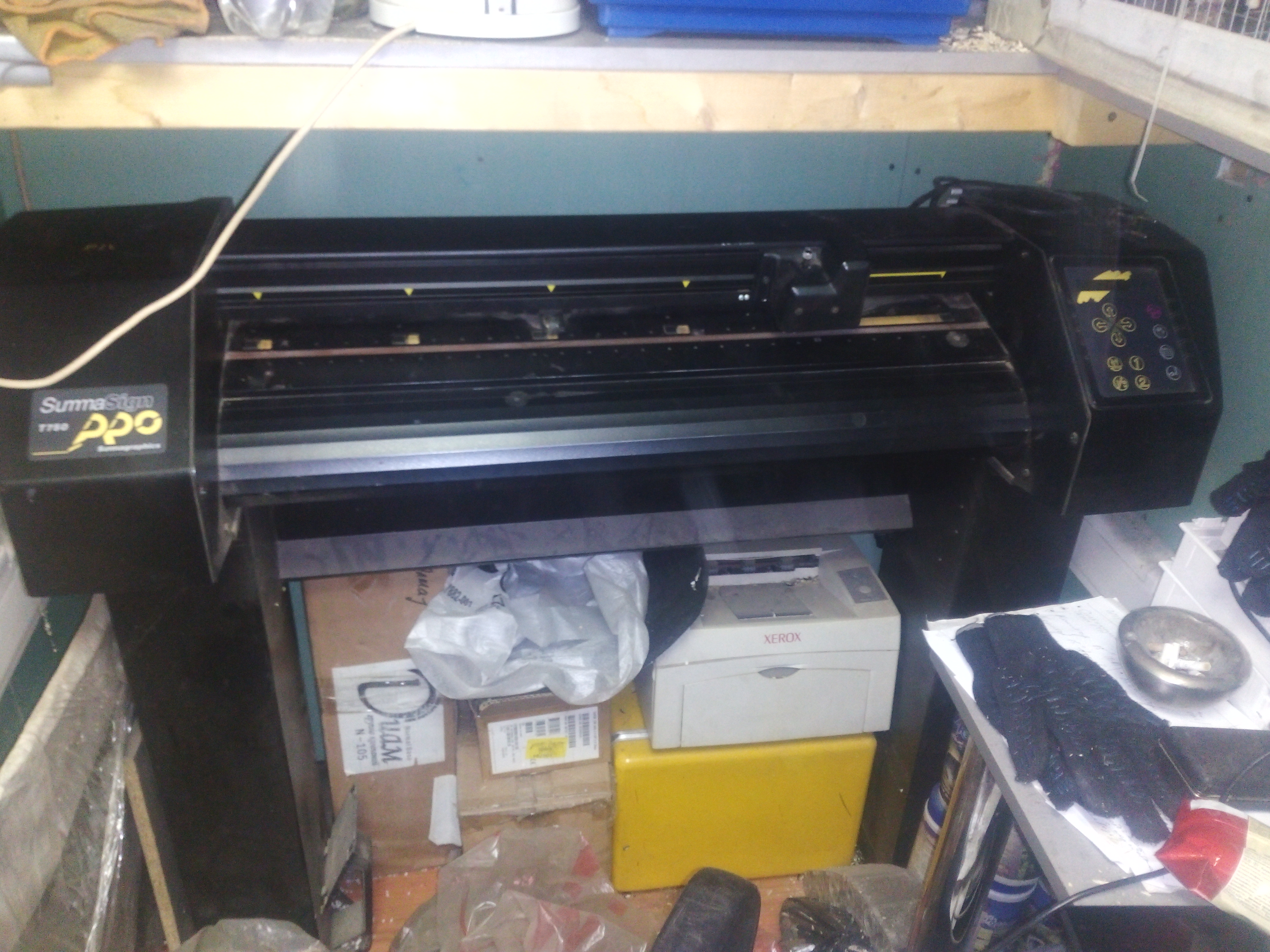 Плоттер позволяет производить раскрой пленки шириной 750мм и толщиной вплоть до 1мм, позволяет делать сквозной и не сквозной раскрой, усилие на ноже регулируется в диапазоне от 5 до 600г. Рещущая головка тангенциальная, благодаря чему не возникает проблем с нарезкой очень маленьких элементов с острыми углами (в отличии от плоттеров с флюгерными головками).