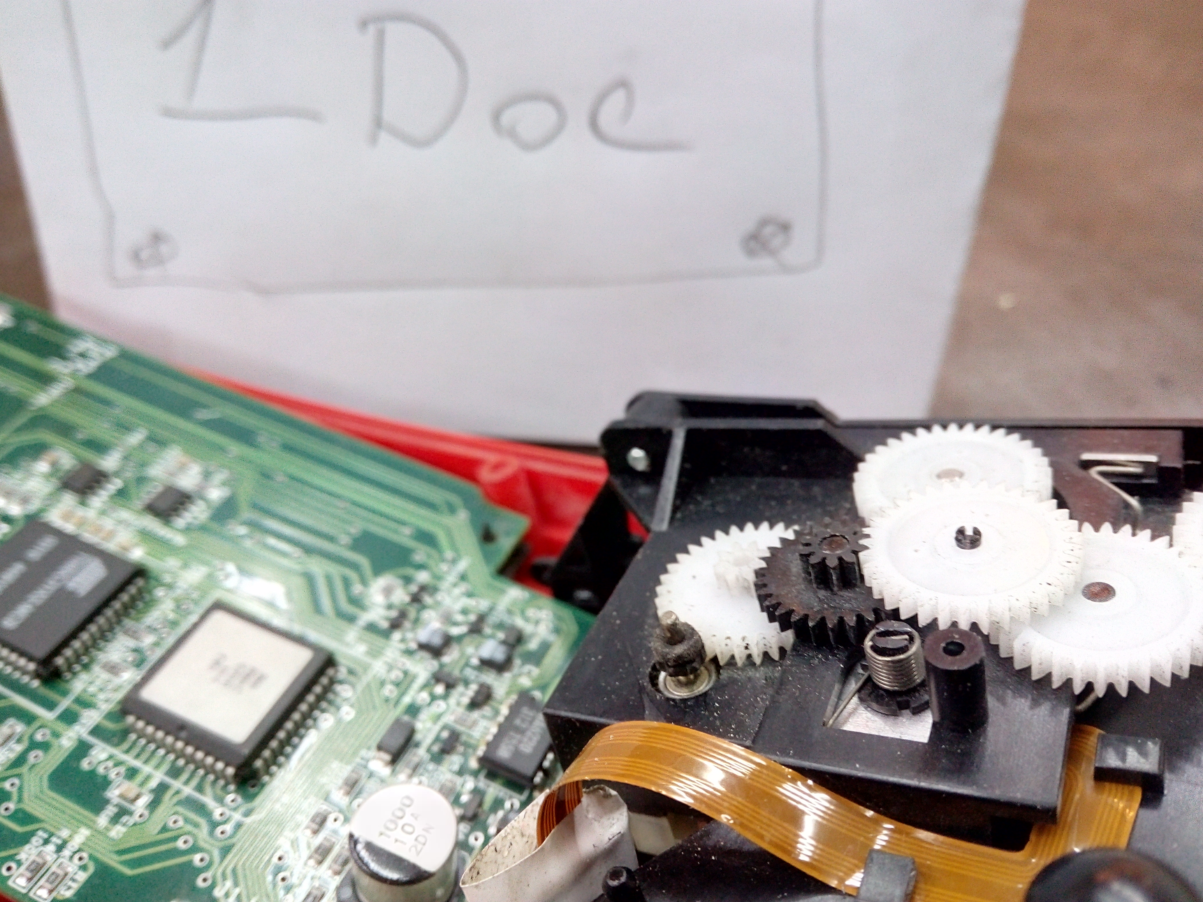 В принтере сломалась одна пластиковая шестеренка, которая заменена на резинку. Принтер работает, но иногда резинка буксует и это сказывается на качестве печати.