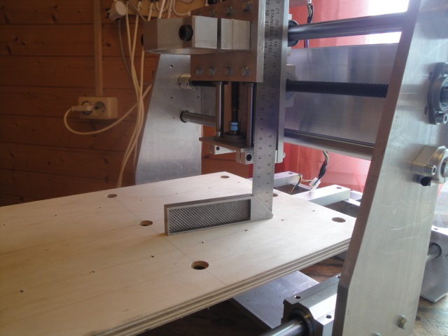 Станок собран аккуратно. Оси ортогональны в пределах погрешности измерений (в Mach3 нарисовал квадрат со стороной 150мм и измерил диагонали с точностью 1мм).