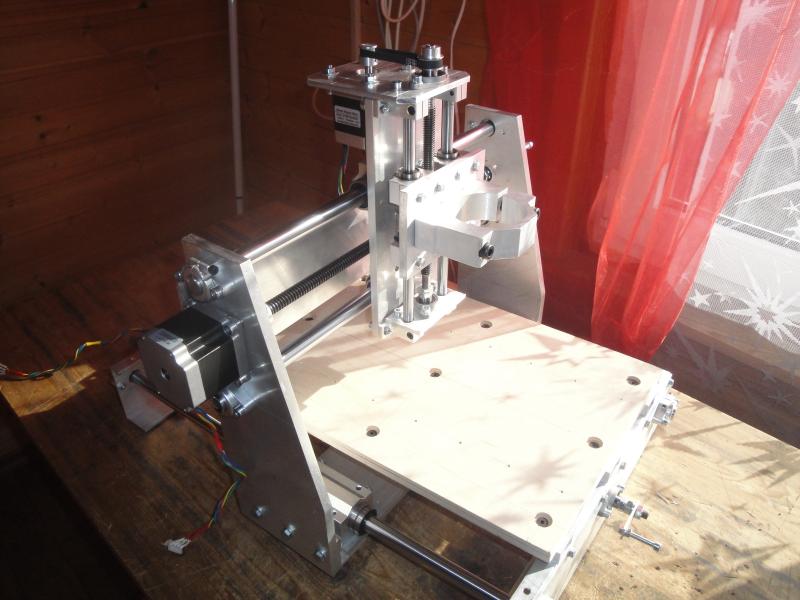 Механика - направляющие осей Х,У валы диаметром 16мм, ось Z - 10мм. Ходовые винты трапециидальные 12х3мм (оси Х,У), ось Z - 10х2мм, ходовые гайки капролоновые, разрезные, с регулируемым люфтом. Шаговые двигатели НЕМА 23 с моментом 10-11кг. Боковые порталы толщиной 10мм, выкроены из полосы 120х10мм, общий вес механики 13-15кг.