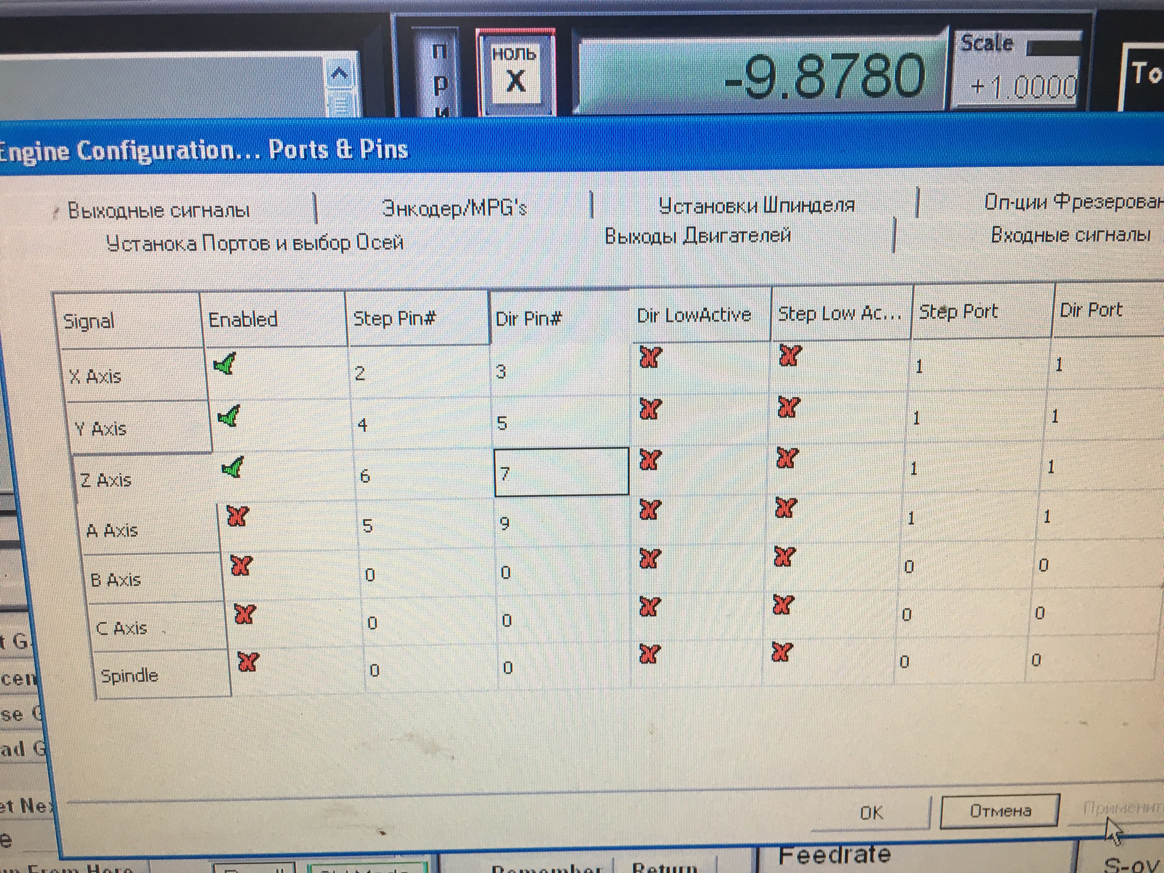 На каком то видео на ютубе оп настройке видел, что во вкладке выходные сигналы нужно вот так прописать галочку Enable1 port1 и pin14, для того что бы когда жмёшь на красную кнопку и она перестает мигать ШД в этот момент стопорятся и не крутятся от руки если ещё раз нажать, что бы она моргала, то шд крутятся от руки. Но я пробовал и этим Enable1 и без него ШД не идут. :wtf: :wtf: :wtf: