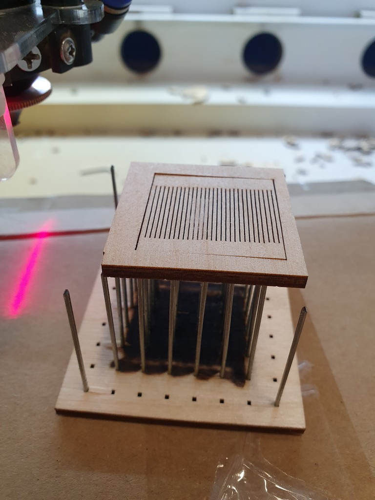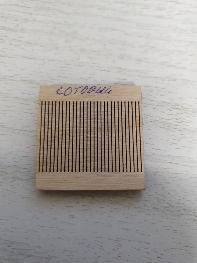 Т.к. я только начинающий пользователь лазера, то не могу сравнить его с ламельным или сотовым столом. Но материал не сдувается потоком воздуха, тыльная сторона материала получается девственно чистой.