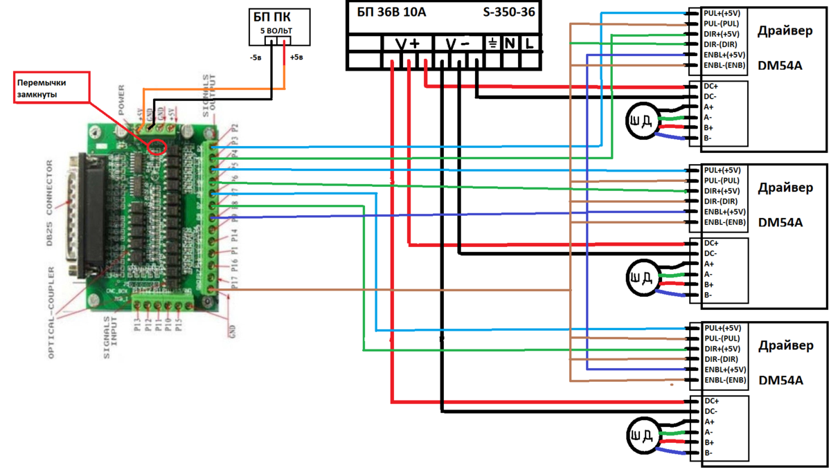Mamont писал(а):Накидай схему как подключал драйвера, питание, контролер