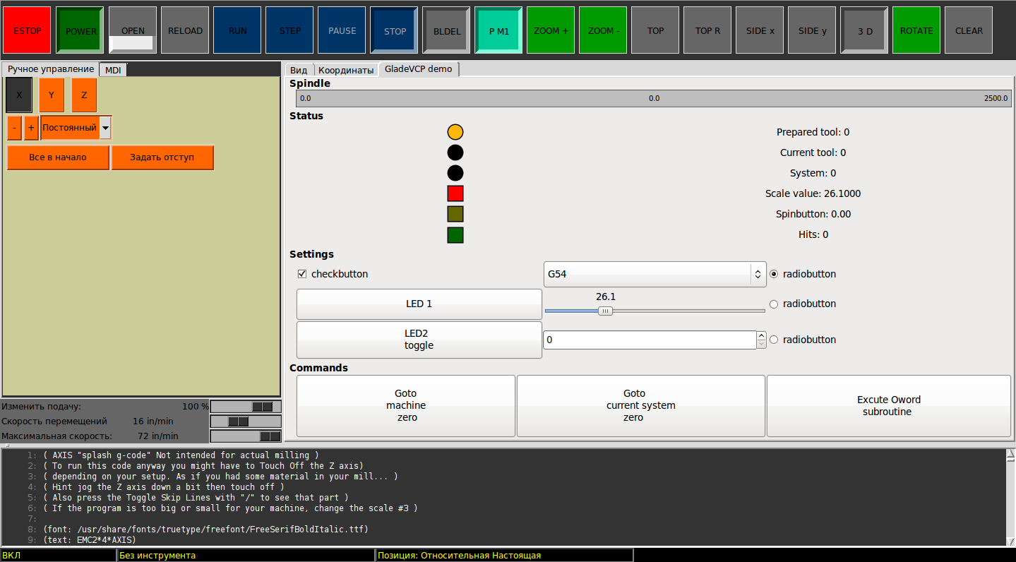 Было бы прикольно иметь возможность пихать панели pyvcp в имеющиеся вкладки. А еще лучше прямой иметь доступ к структуре GTK axis.