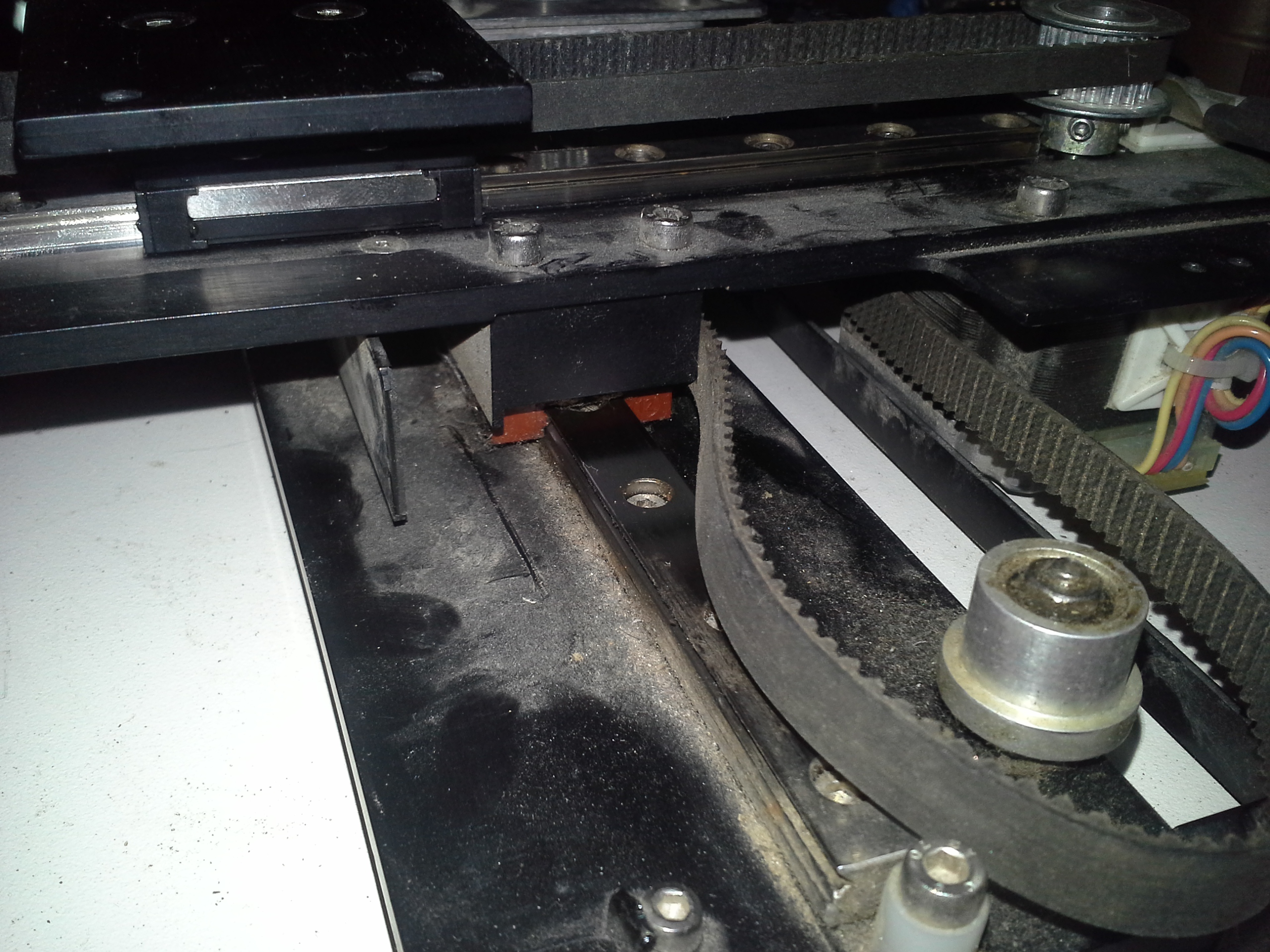 нижний рельс star 12 . ход 100 мм ,ремень 3MR456 , ширина 9 мм , мотор привода биполярный, высота 53 мм, маркировка стёрлась с наклейки, незначительная поверхностная коррозия магнитопровода.