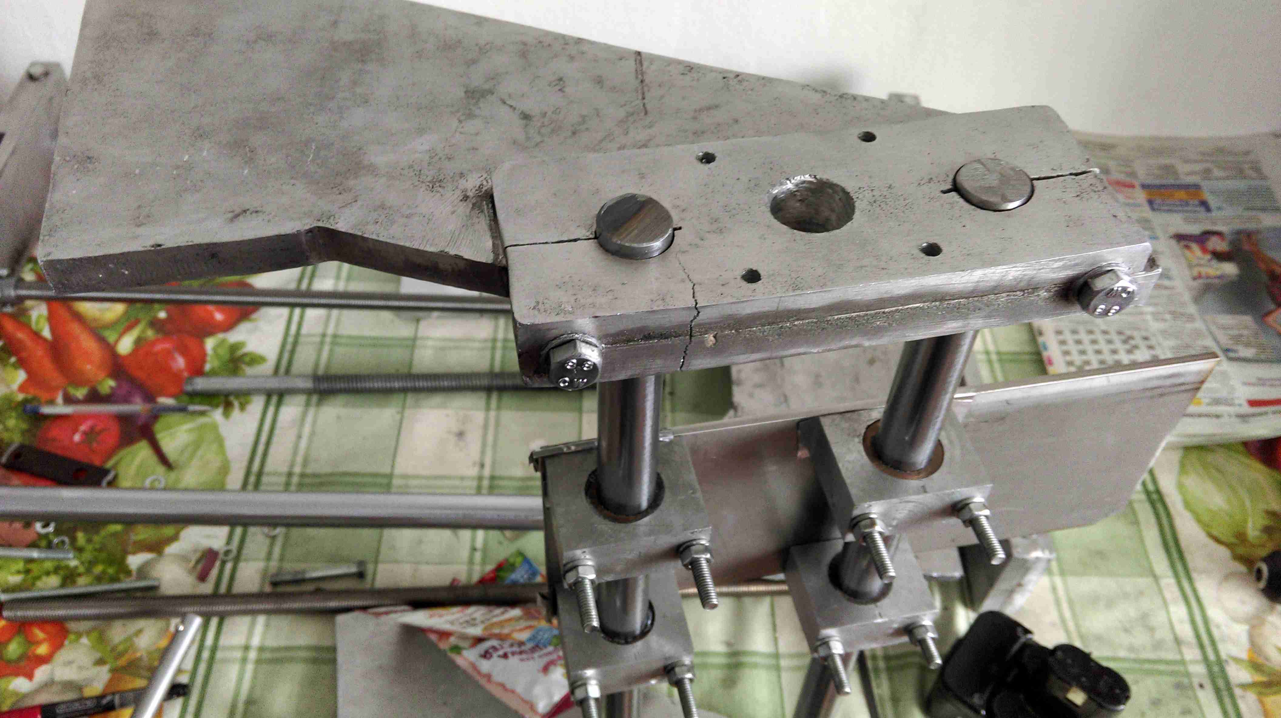 Трещина,чуть кондратий не хватил :pssdoff: .Хотя пор не было.Пришлось переделать сразу две стойки если делать одну тогда валы будут не параллельно.