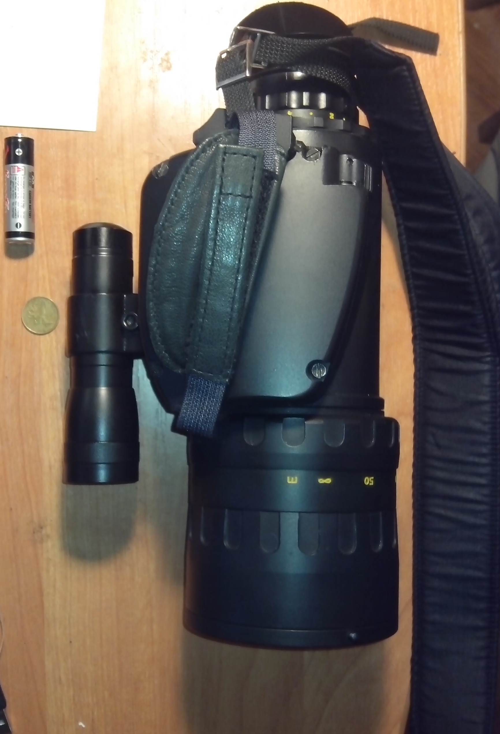 Монокуляр ночного видения 2 поколения. 4х увеличение, подстройка резкости от 5м до бесконечности, светосильный зеркально-линзовый объектив.