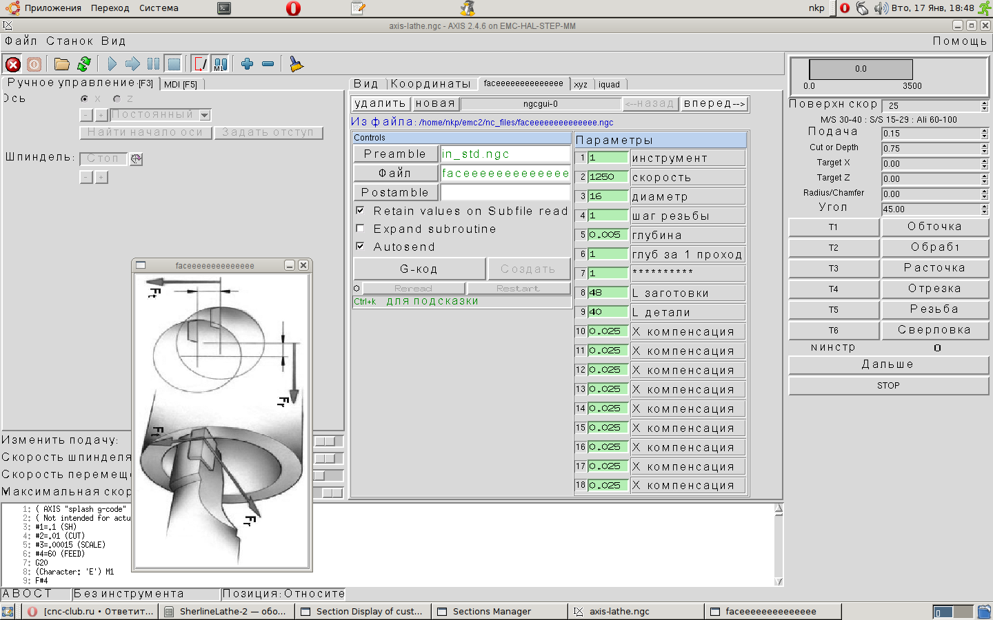 Помещаем наш файл lathe.ngc в папку прописанную в ini [DISPLAY]PROGRAM_PREFIX