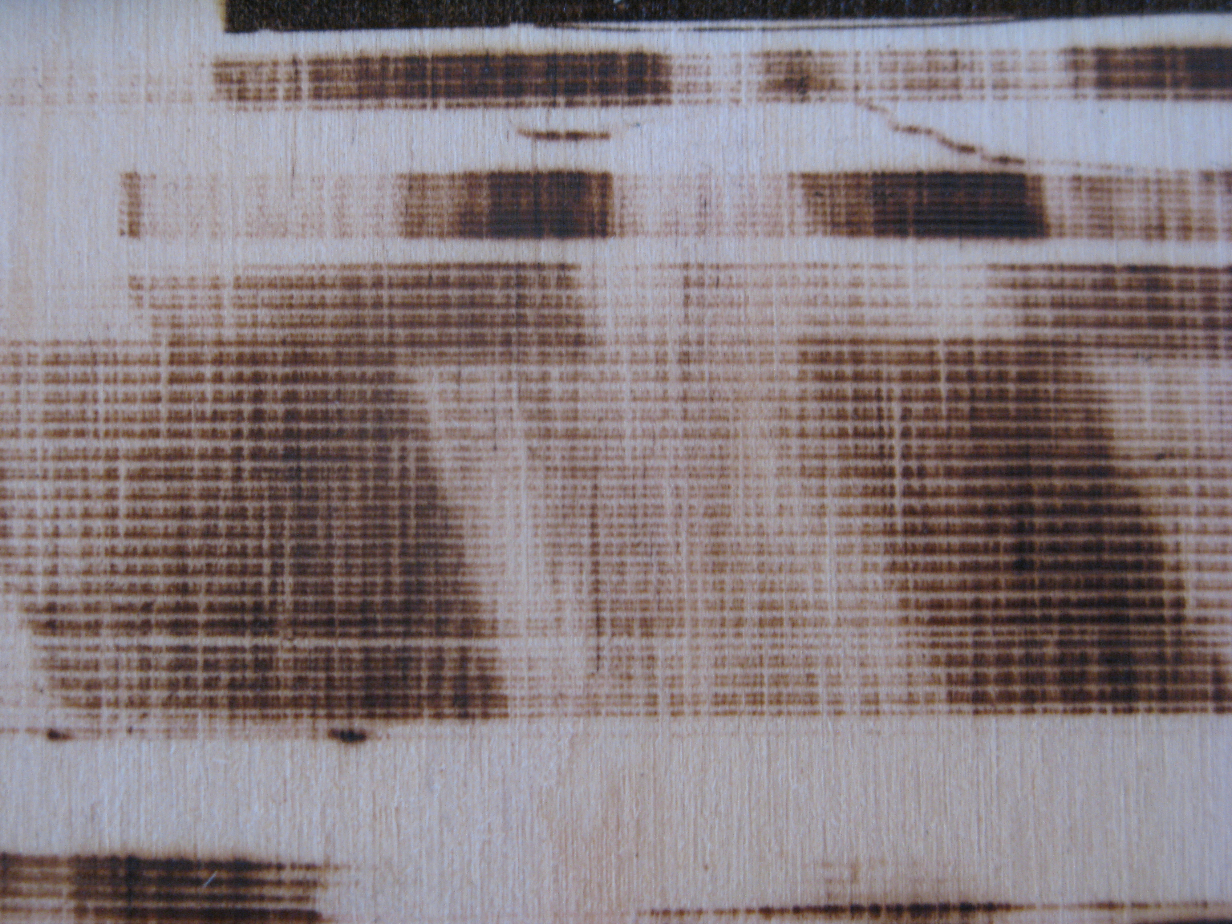 У меня и многих других пользователей, тоже не сразу начали получаться картинки, т.к. реально много нюансов, начиная от того что даже на одной и той-же фанере, имеющую разную влажность получается абсолютно разный результат, так-же в зависимости от материала, приходится подбирать необходимую мощность, т.к. на одном дереве сильно прожигает, а на другом, еле заметный след.