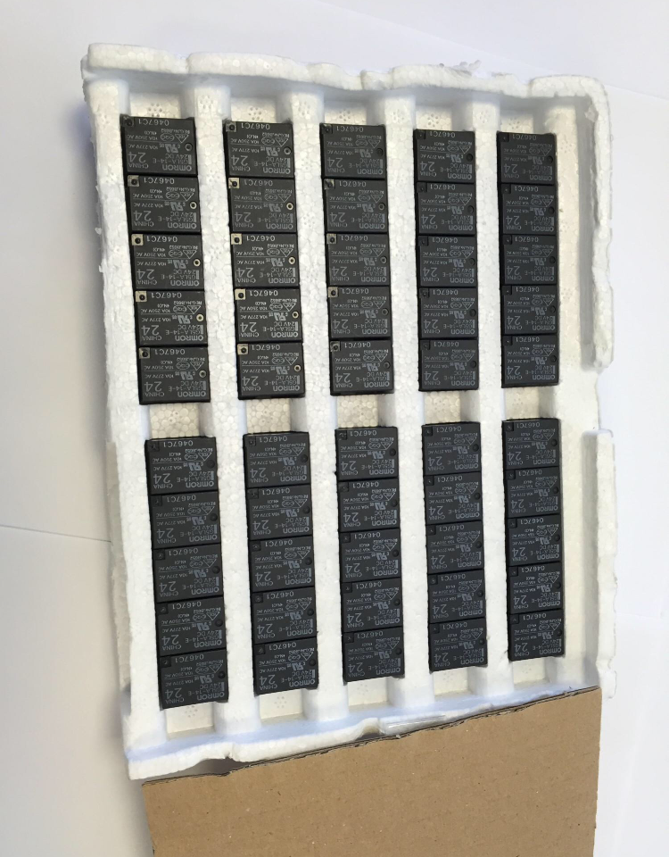 Реле электромеханическое, питание катушки 24В, коммутируемое напряжение до 250В с током до 10А.