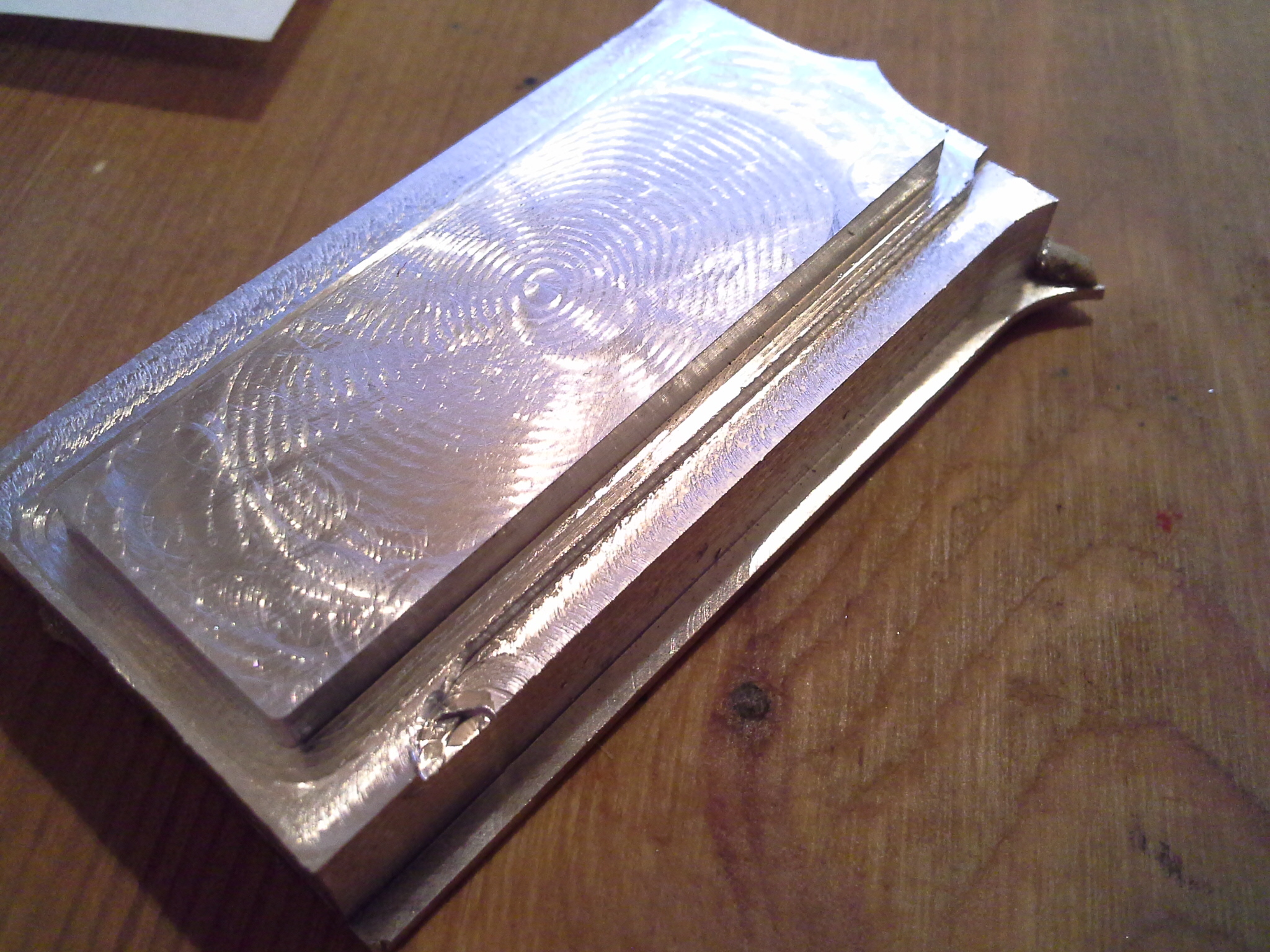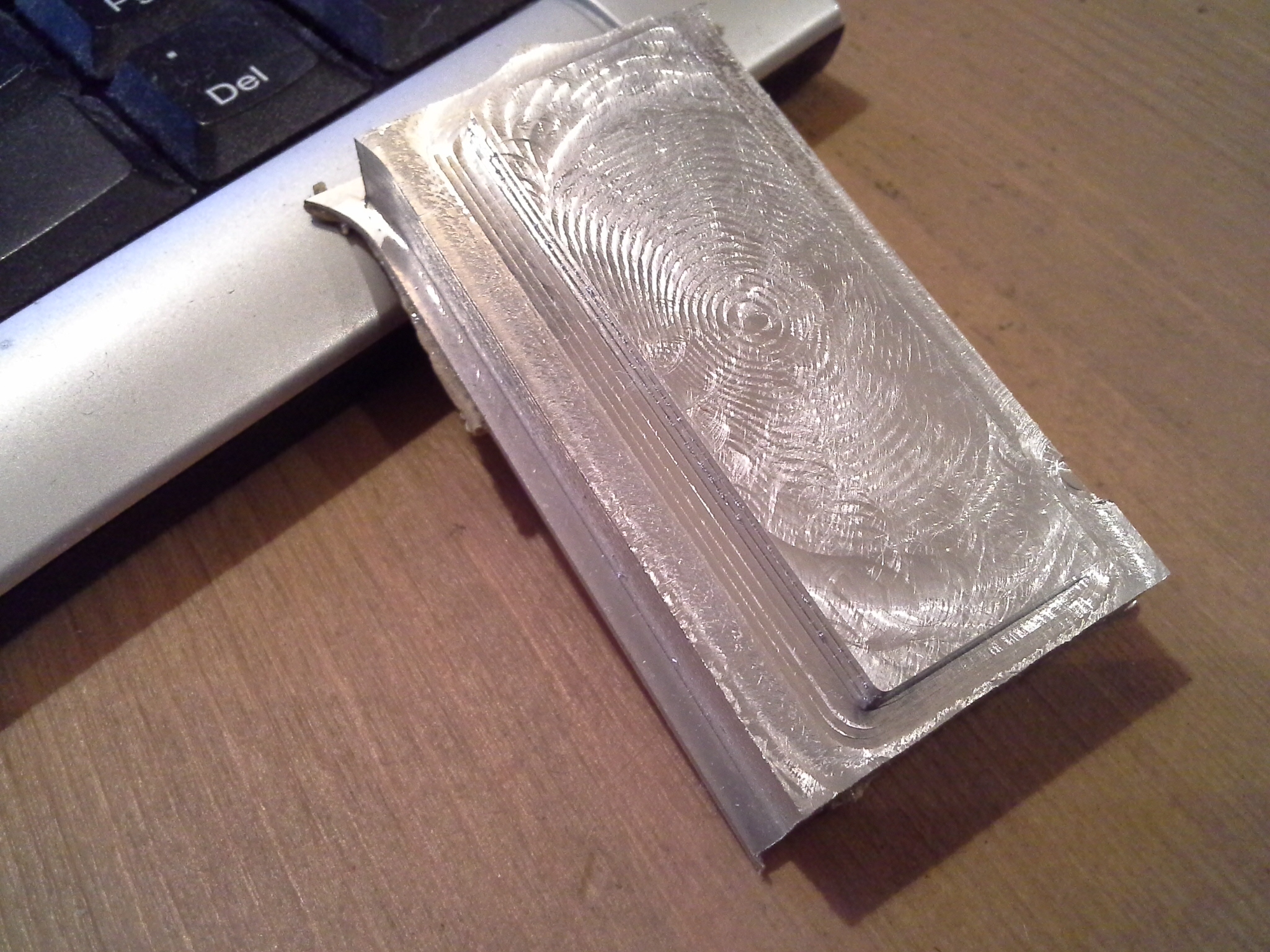 Во-вторых желательно взять заготовку раза в два пишире и потолще, чем нужно, и начать отчекрыживать все лишнее аймашинингом3д. С шагом по Z сначала 2мм, потом одуматься и переделать на 1мм. В моем случае заготовка была 40*60*20, а желаемая деталь 50*18*10 вплане. Ну и режим наверное лучше подобрать чтоб вибраций было по-больше. Ну хотя бы чтобы стружка по детале скакала :idiot: