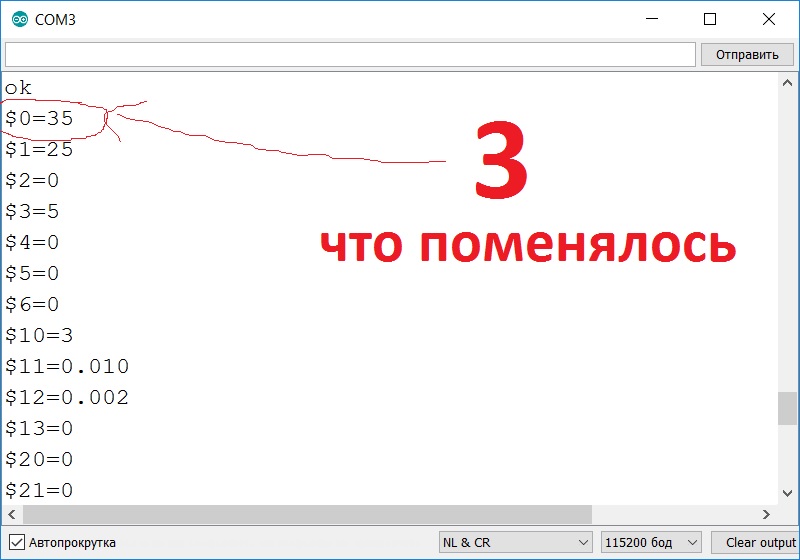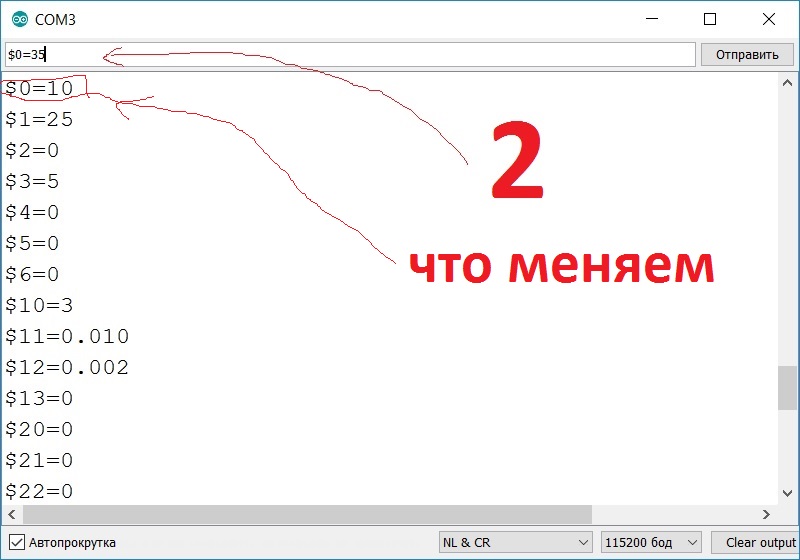 Команду вводим в строке команды например консоли ардуины.. $параметр=новое значение. Вам нужно найти значения, для Вашего станка.