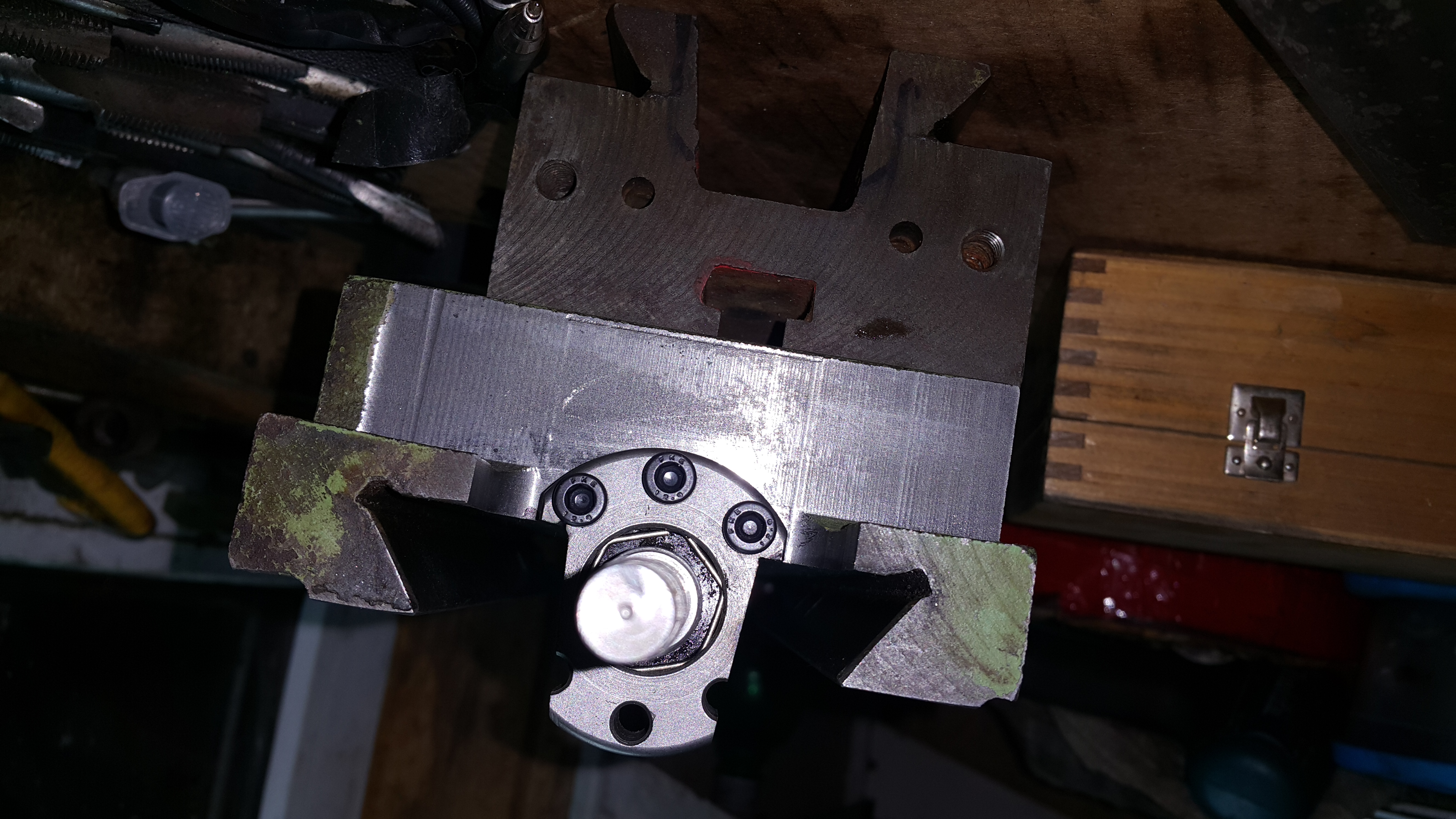 Итого. Сделал вращающуюся гайку. Долго маялся со шкивом, кое как выставил его, литье кривое, в одном месте есть провал почти на десятку.