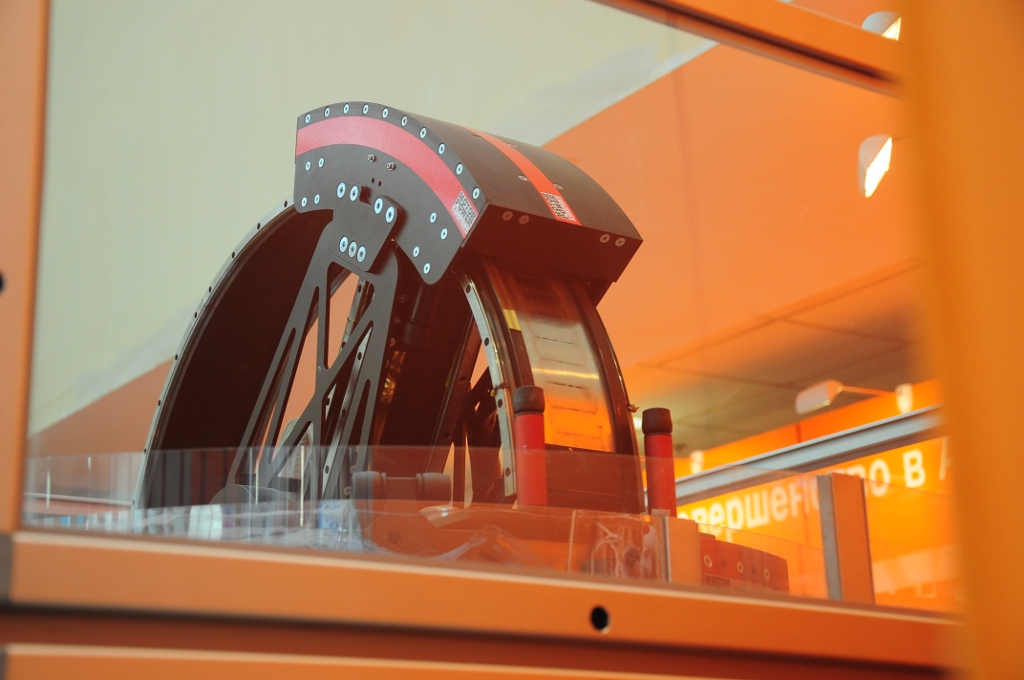 Сначала раскладочный станок. У него две поворотные оси, причем с изогнутыми направляющими и изогнутыми линейными двигателями.