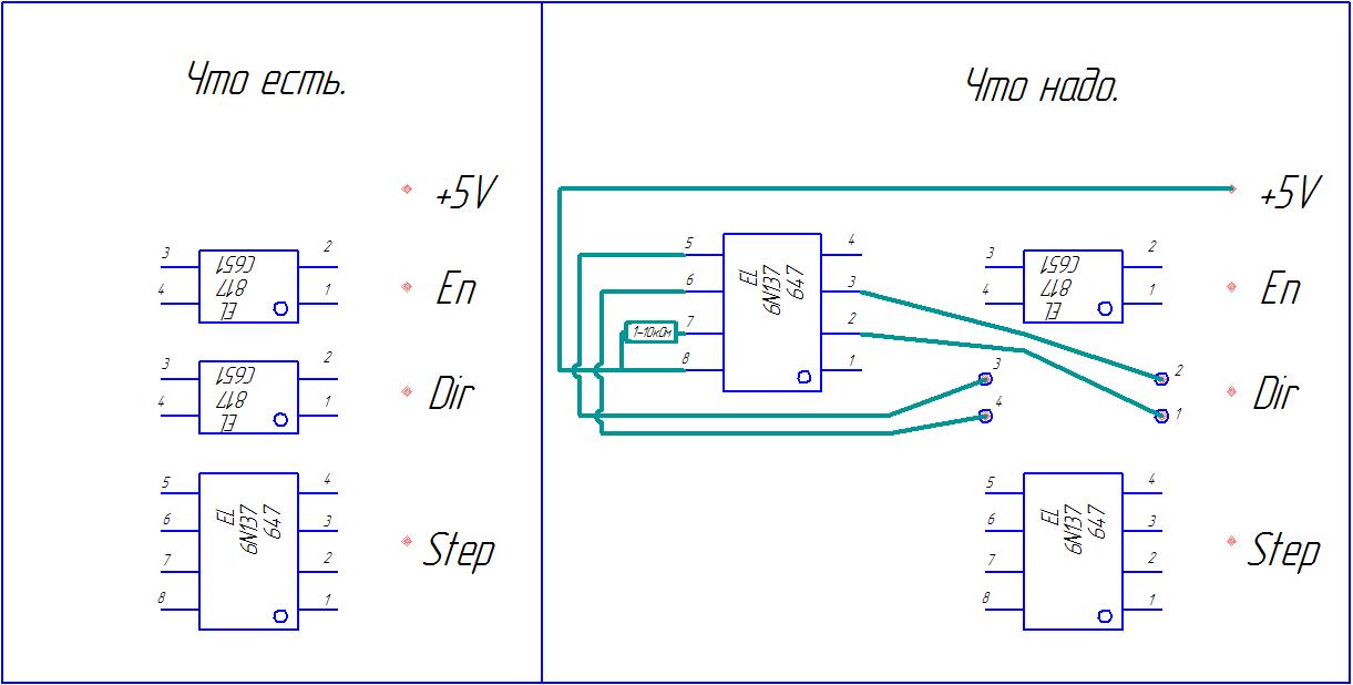 Ну вот нашёл схему драйвера, где показаны подключения оптронов.