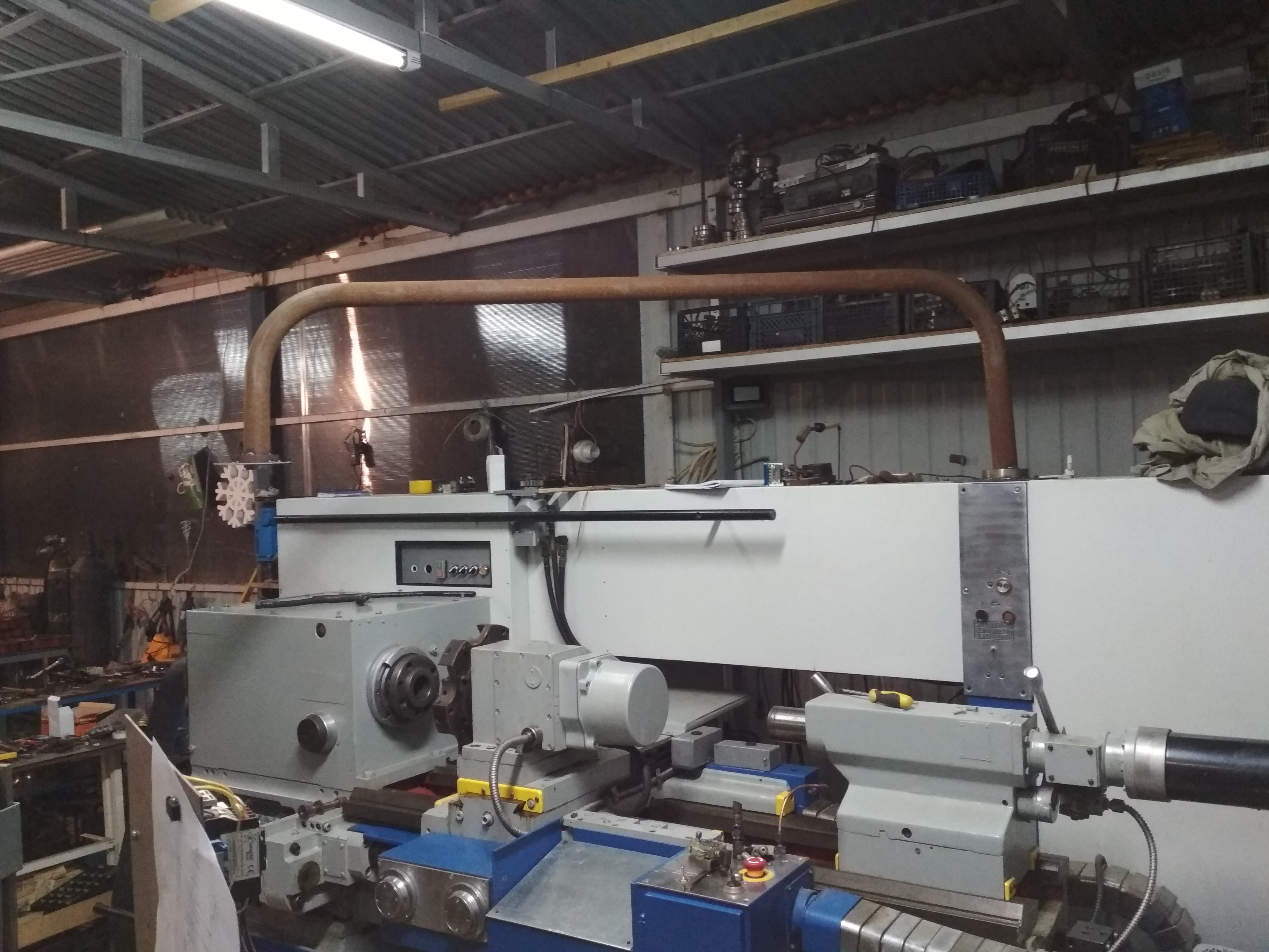 Крепление стойки сделал сверху, согнул на своем дорновом трубогибе, как было не захотел не удобно будет к задней бабке подходить. Осталось покрасить её и сделать корпус под ЧПУ.