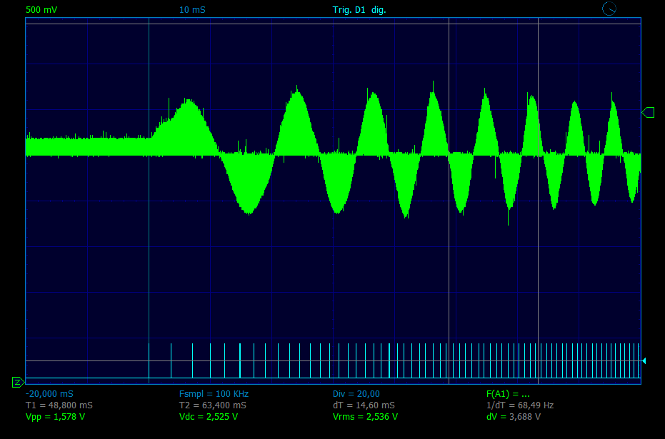 Вот осциллограмма разгона в режиме 1\2 шага.