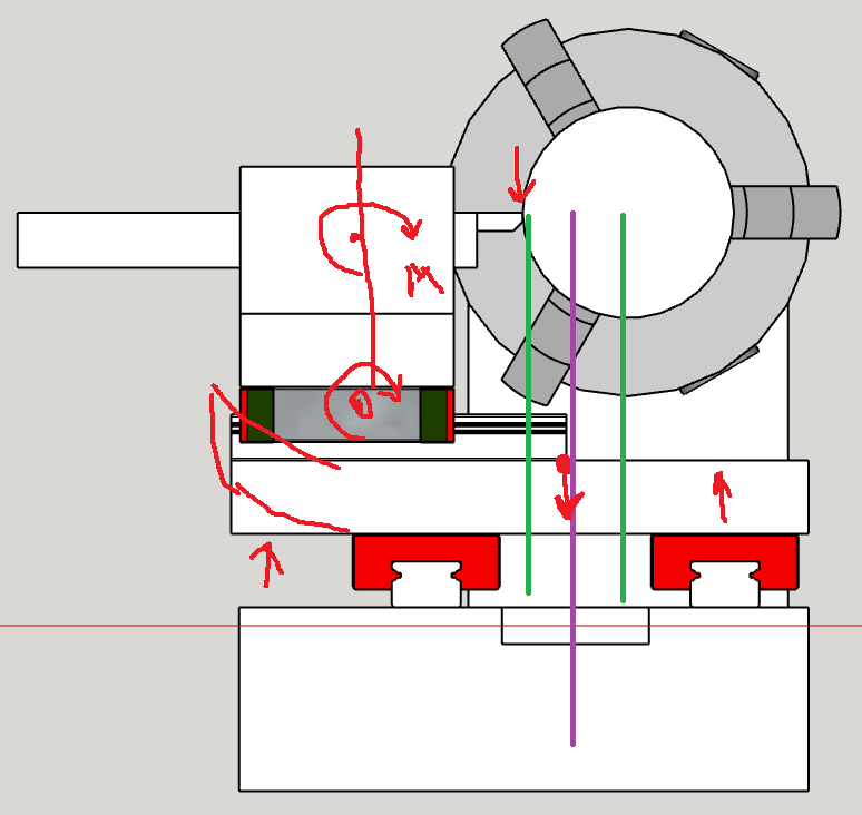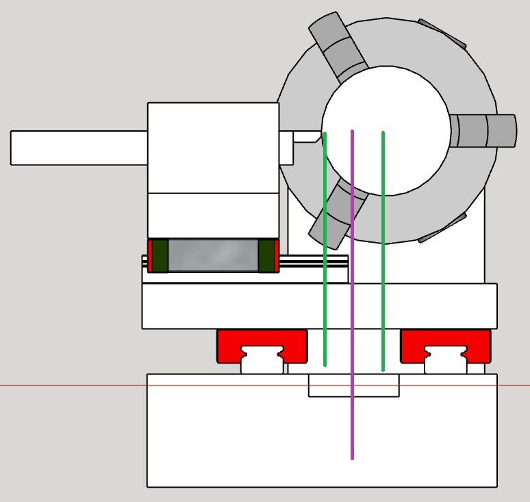 Я вот знаю, что отрезная операция самая сложная, и все вибрации и всякие резонансы возникают ближе к краю заготовки (т.е. левее) Из этого напрашивается вывод, что геометрический центр между каретками всё-таки логичнее было бы прижать не к фиолетовой линии, а левее.