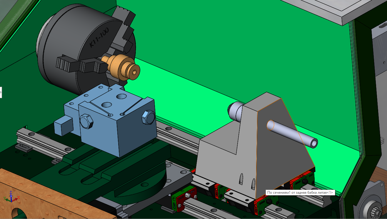Мне тоже так кажется правильнее. Но у такой конструкции получается принципиальный минус. Задняя бабка , которую очень хочется реализовать как отдельную ось, будет цепляться за основную ось с резцедержкой.