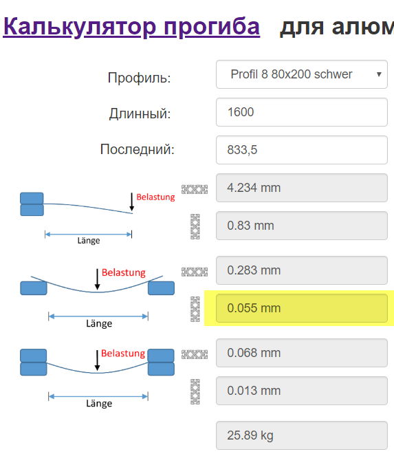Наткнулся на хороший калькулятор сравнения деформаций алюминиевых профилей (основные профиля которые продают в Европе). На немецком языке (Гоогл переводчик в помощь)