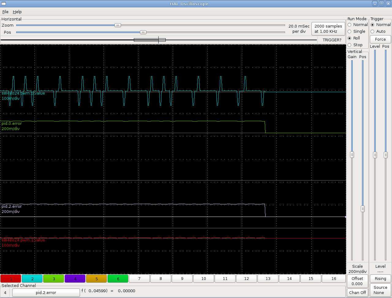 А как ты настраивал? Покажи скриншоты из HAL Scope по пинам ferror position и feedback по всем осям.