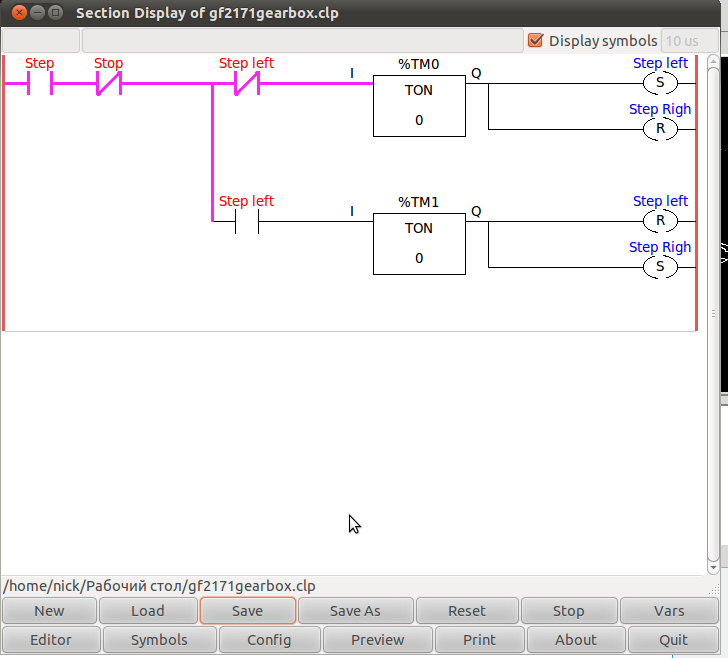 Второй кнопкой задать нужную комбинацию и выдать ее на пины месы. Только похоже что в настрйоках ладдера по умолчанию мне уже нехватает значков, они перестали вставляться. В конфигураторе ладдера значения не правятся, когда пытаюсь сконфигурировать черех хал-сыпятся ошибки