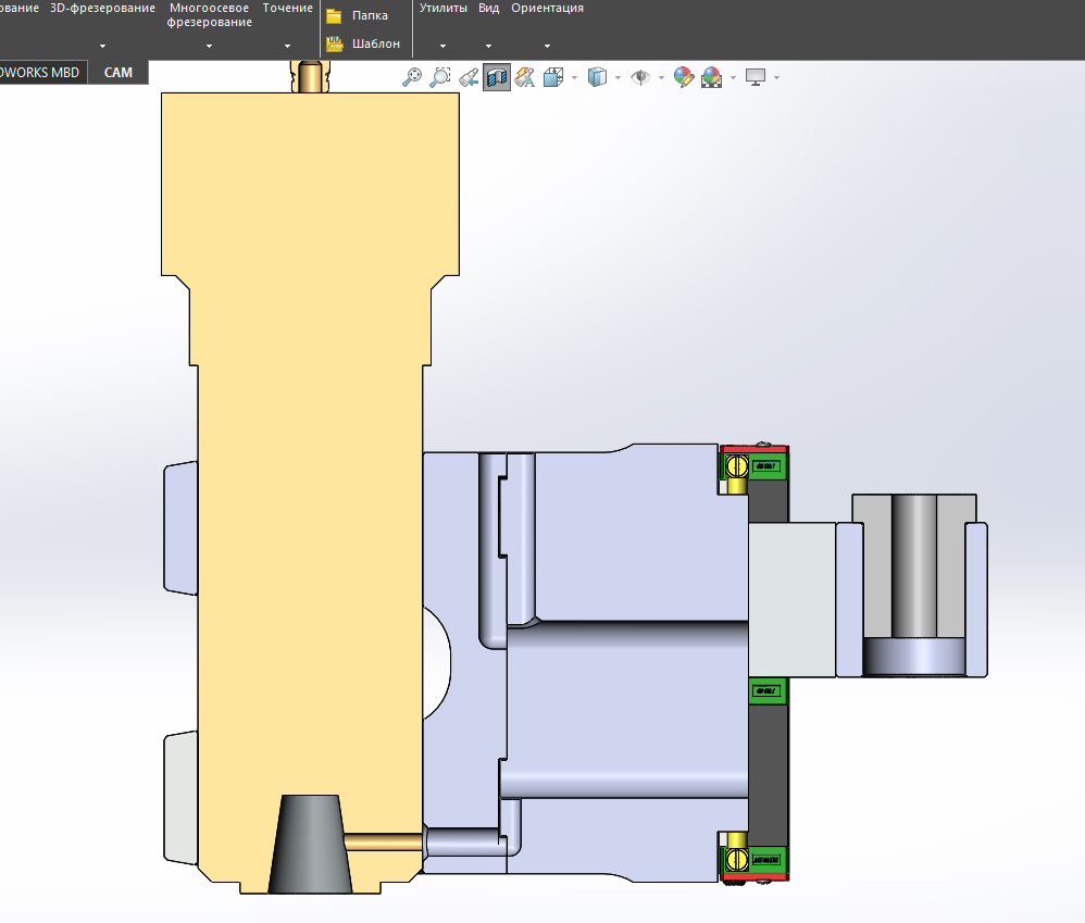 Вопрос о возможности подключения: прикладываем скриншот с 3Д моделью сборки шпиндельного узла, на котором предусмотрен канал для установленного фитинга и подвода воздушного потока в систему уплотнения передних подшипников. Так как на текущий момент шпиндель установлен и прошел юстировку на ОЦ, пока проблематично заниматься снятием шпинделя для одной интересующей Вас фотографии.