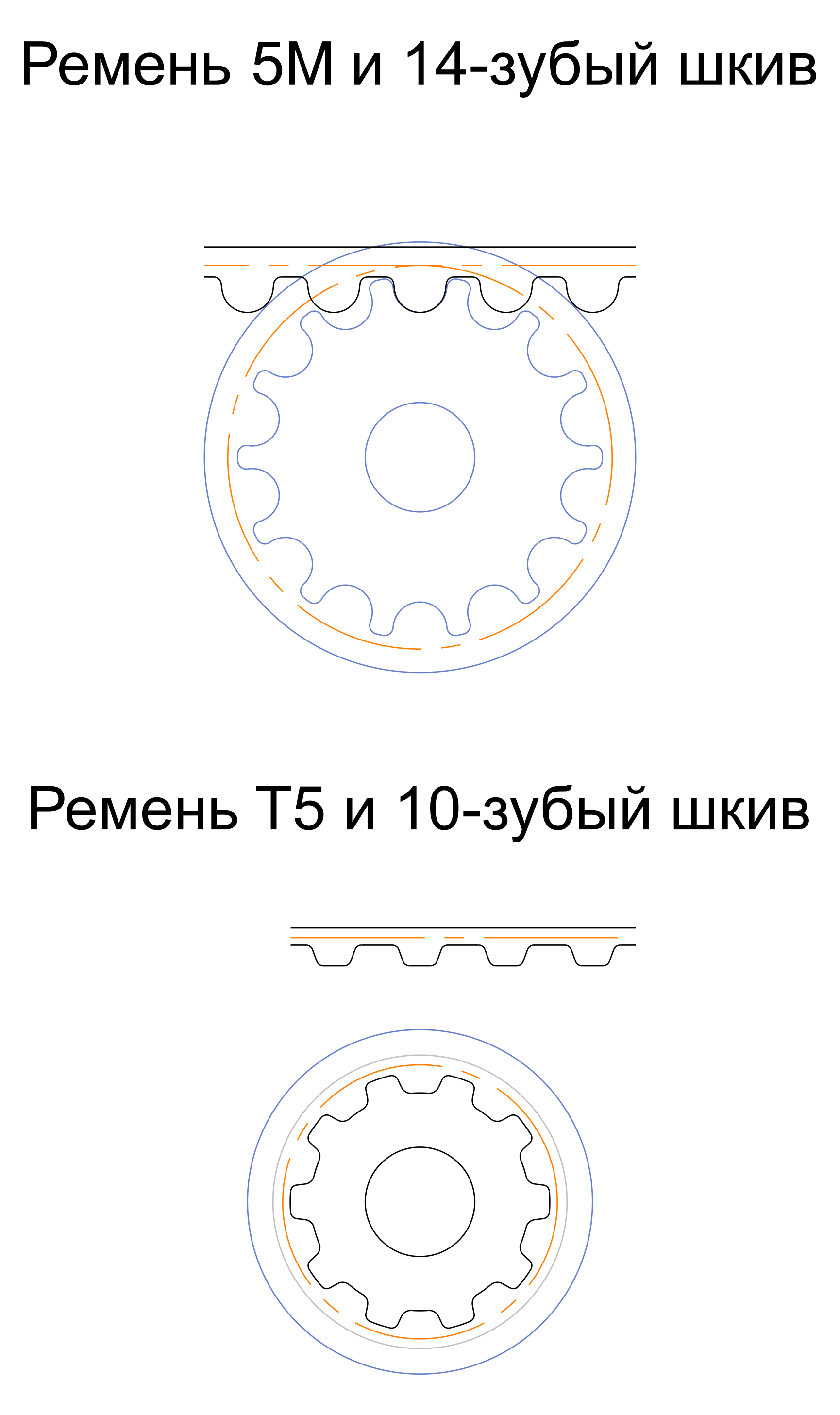 А полукруглый - упирается центральной точкой. А сделать выемку меньше - нельзя, т.к. зуб застрянет в выемке. И чем меньше диаметр шкива - тем свободнее должен заходить зуб, тем больше люфт.