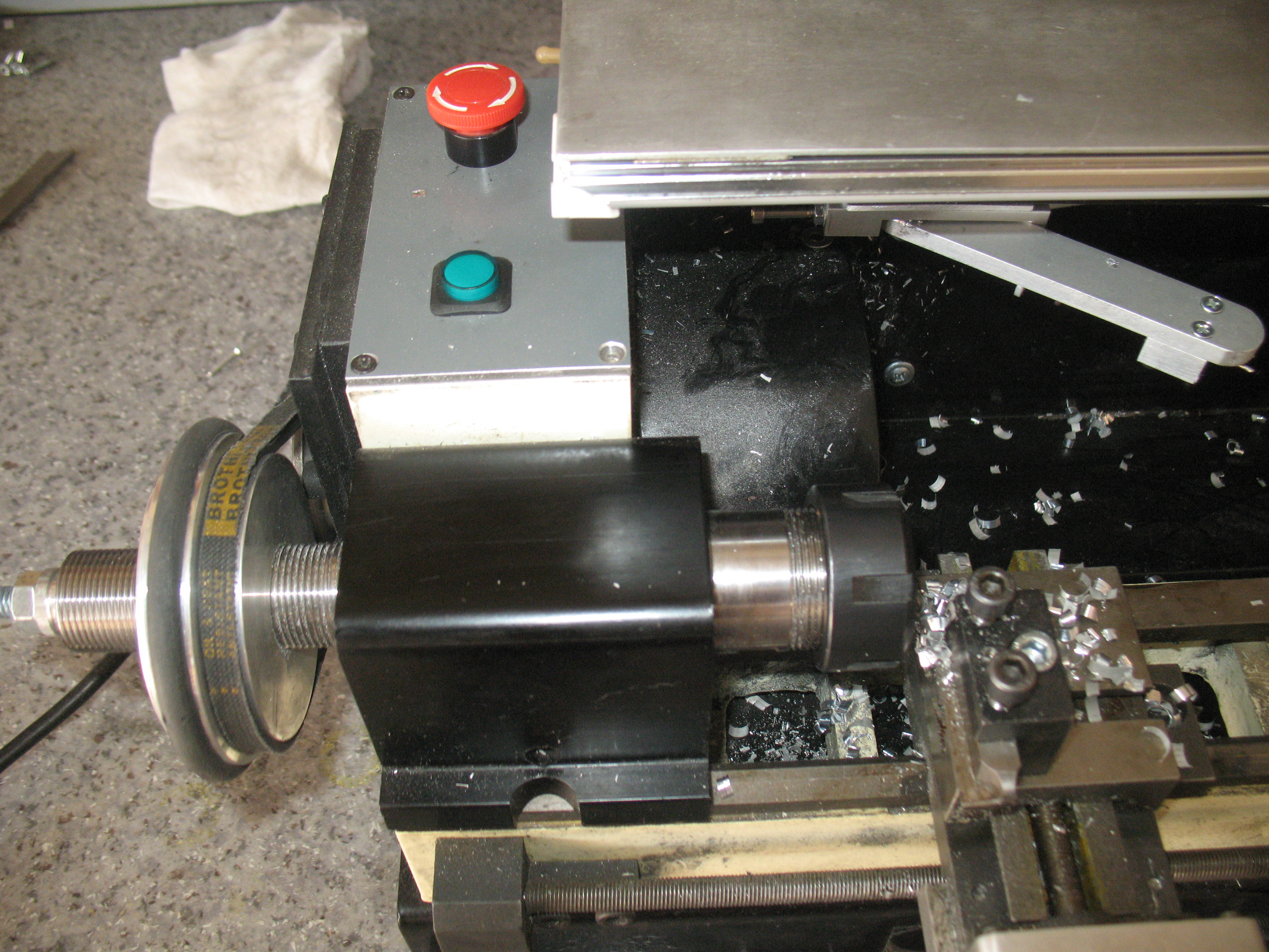 Поставил переднюю бабку с цангой от какого-то американского станка. На eBay прикупил.