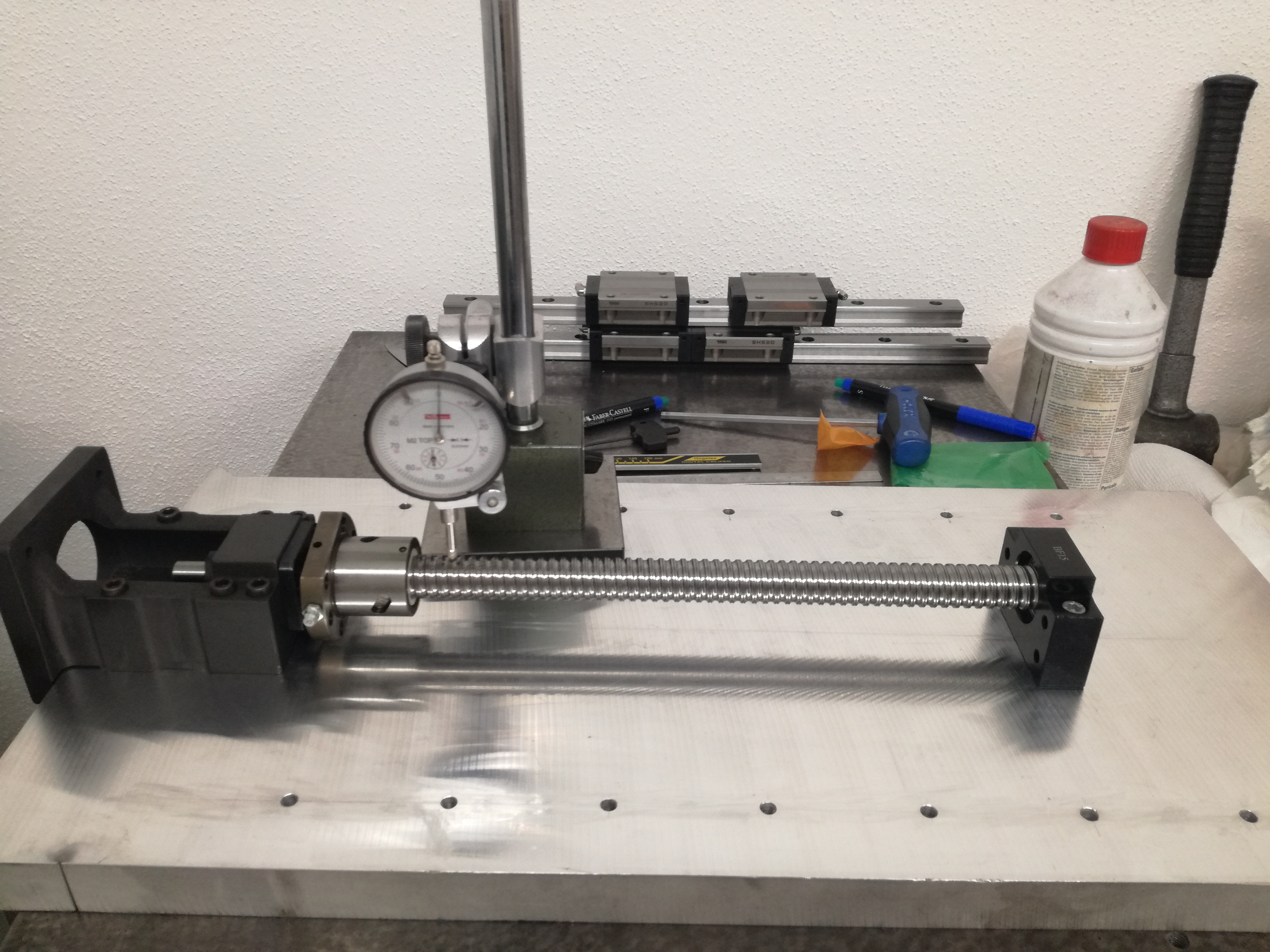 Для того, чтобы подтвердить (или опровергнуть) теоретические рассчеты о том, что 750W мотора хватит для тяжелой оси Z, был собран стенд из обломков плит и китайких ШВП 2005.