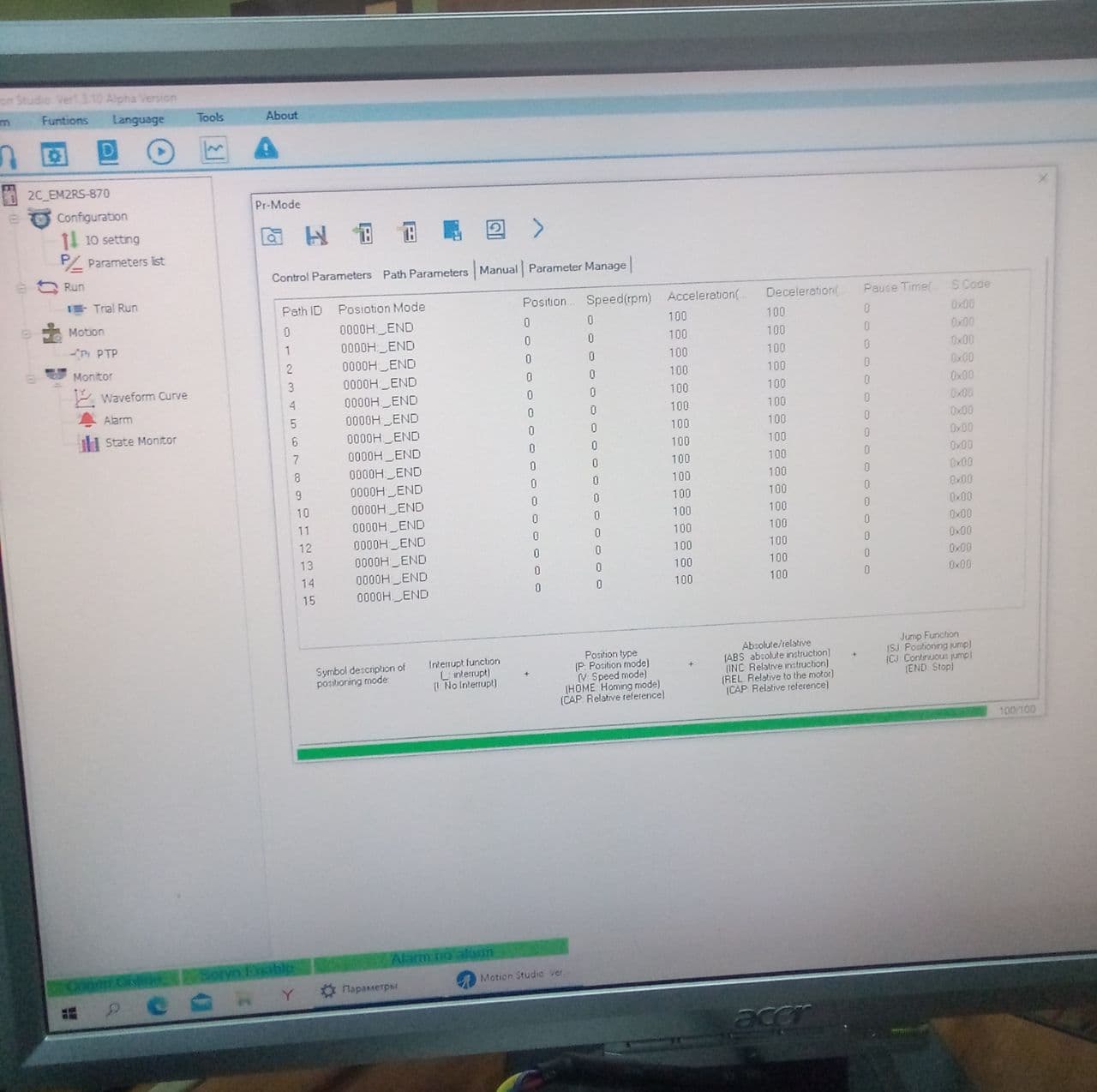 Столкнулась с задачей управления через драйвер EM2RS-566, но загвоздка в том что нужно его настроить по Modbus RTU, так как RS232 нет, может кто-нибудь проконсультировать? Получилось запустить и реверс через команду домой, но он не останавливается во время движения, только при отправке команды на экстренный стоп. Не могу понять как сделать чтобы он прошел заданную дистанцию, и замер на заданное время, а потом вернулся домой.