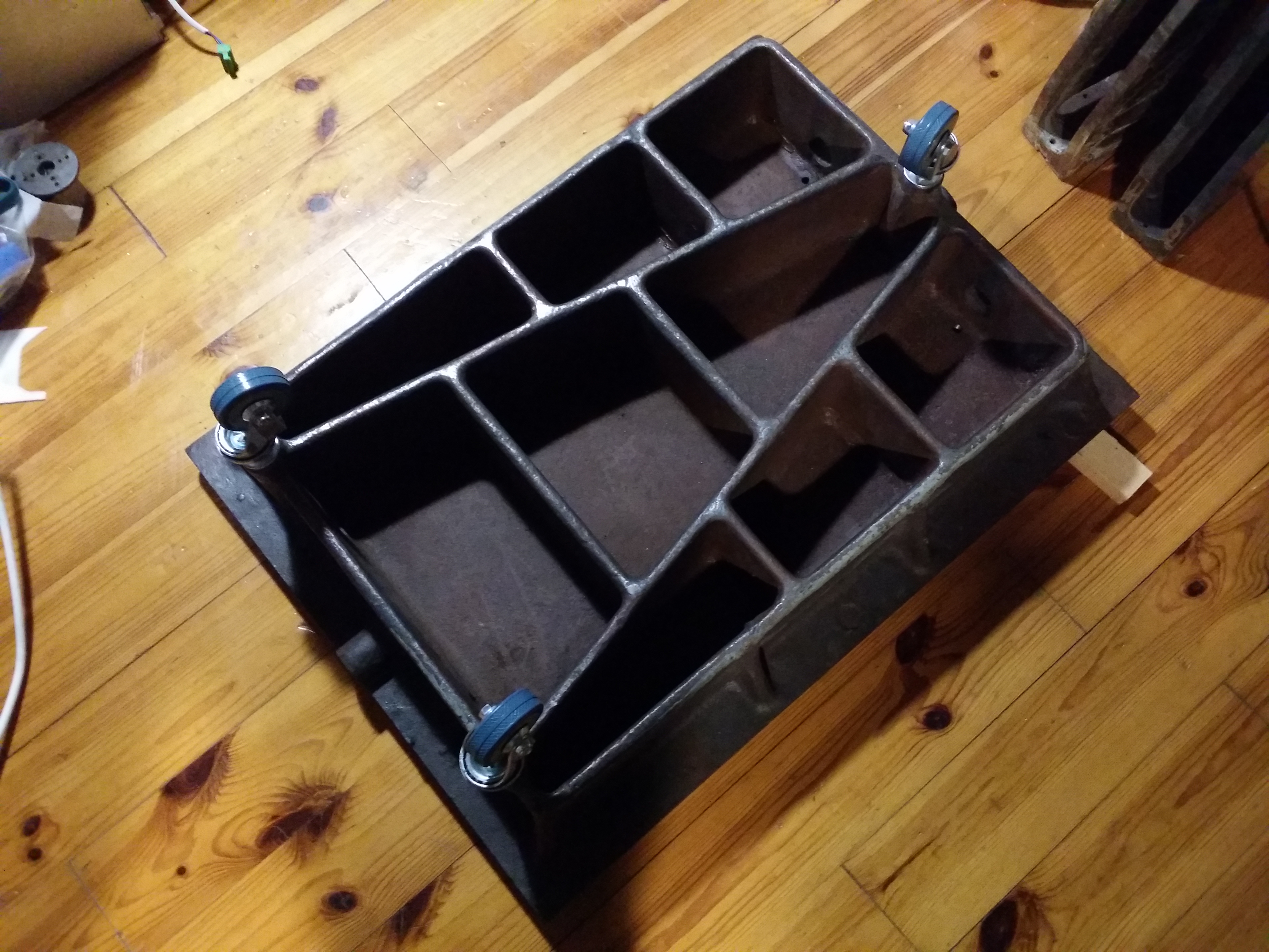 Прикрутил колеса, так как нужен доступ к токарному станку. А пол портить не сильно охота.