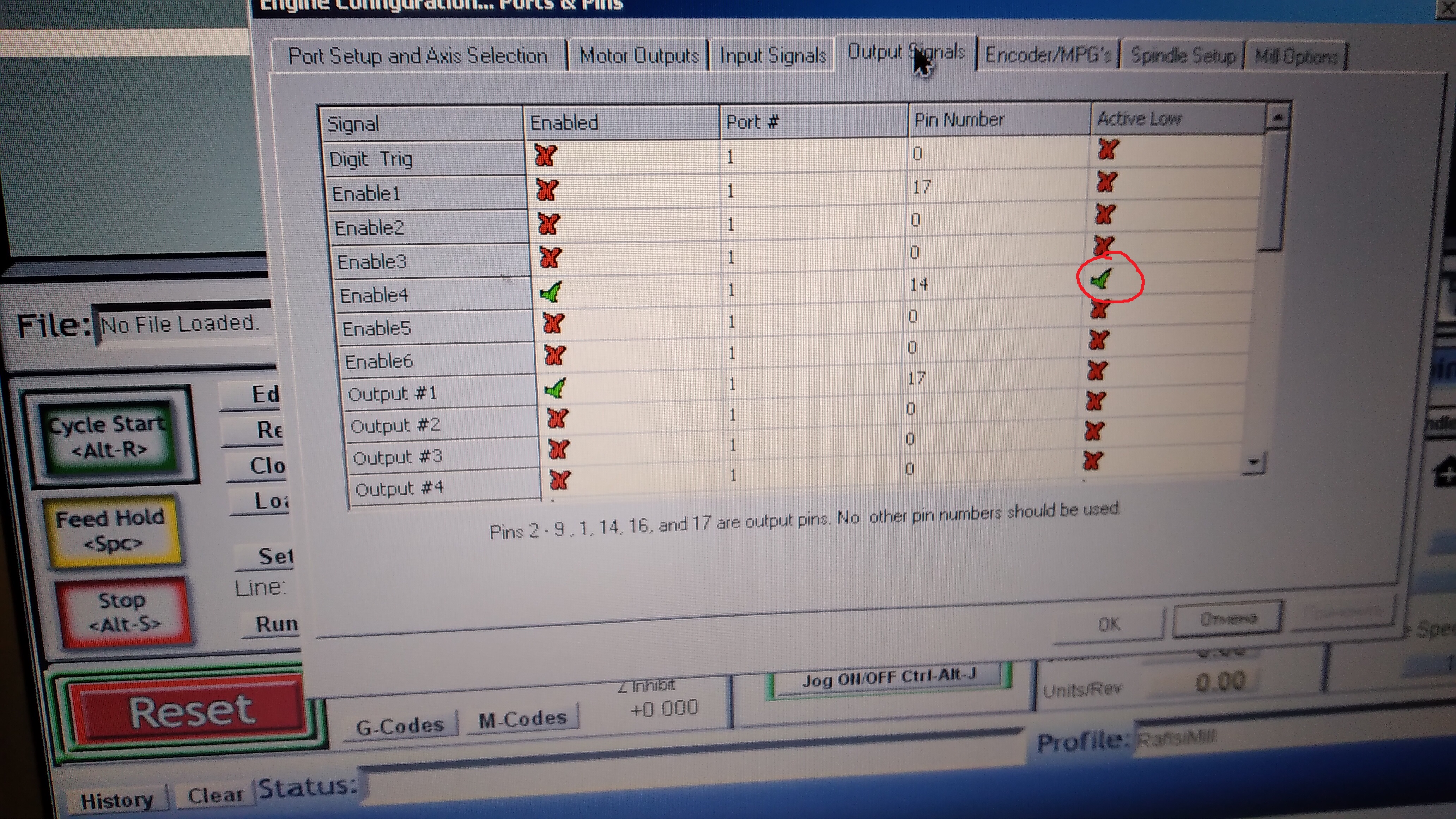 Подключил ось А и убрал галочку в прикрепленном изображении.ура ось а зароботала.шпиндель работает,обороты не скачут.осталась маленькая проблема,при нажатии кнопки REF ALL HOME ось а едет не туда.а так станок работает как нодо.