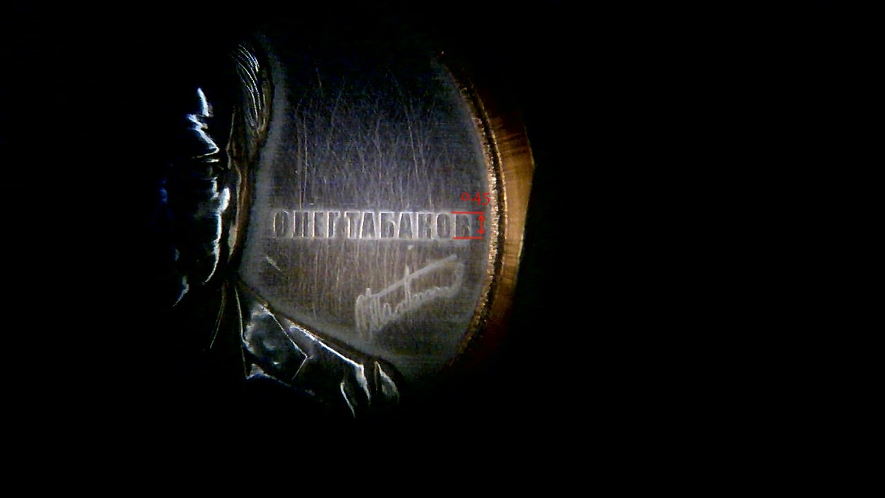вот недавно делал, высота текста 0.45 мм...фото хреновое ( вебкой через микроскоп), станок Самыч на китайских комплектующих...так что , если взять хороший станок, то качество точно будет лучшеАлексей063 писал(а): ↑ как-то её забраковали?