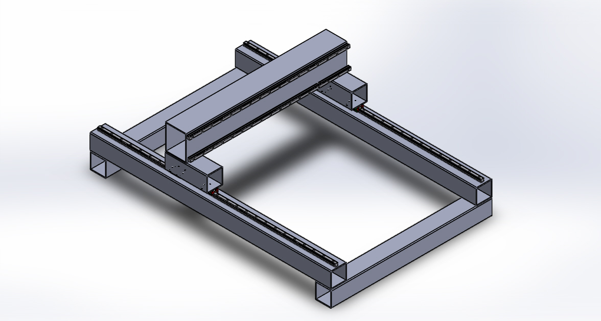 Попробуй узнать к кому можно напроситься на поверочную плиту таких габаритов, пусть самого низкого класса, на ней выставишь готовый каркас, и от самой низкой точки направляющих елозь индикаторную стойку с микронными часами попутно пришабривая. Одной линейкой и уровнем плоскостность да и параллельность не выведешь идеально, будешь рельсы друг по другу ровнять пока не сотрешь. Речь естественно о финишной доводке. Как вариант для эксперимента можно вместо плиты попробовать залить площадку из самовыравнивающегося наливного пола, будет одноразовая плита, а чтоб стойка с часами ездила хорошо чем-то смазать.