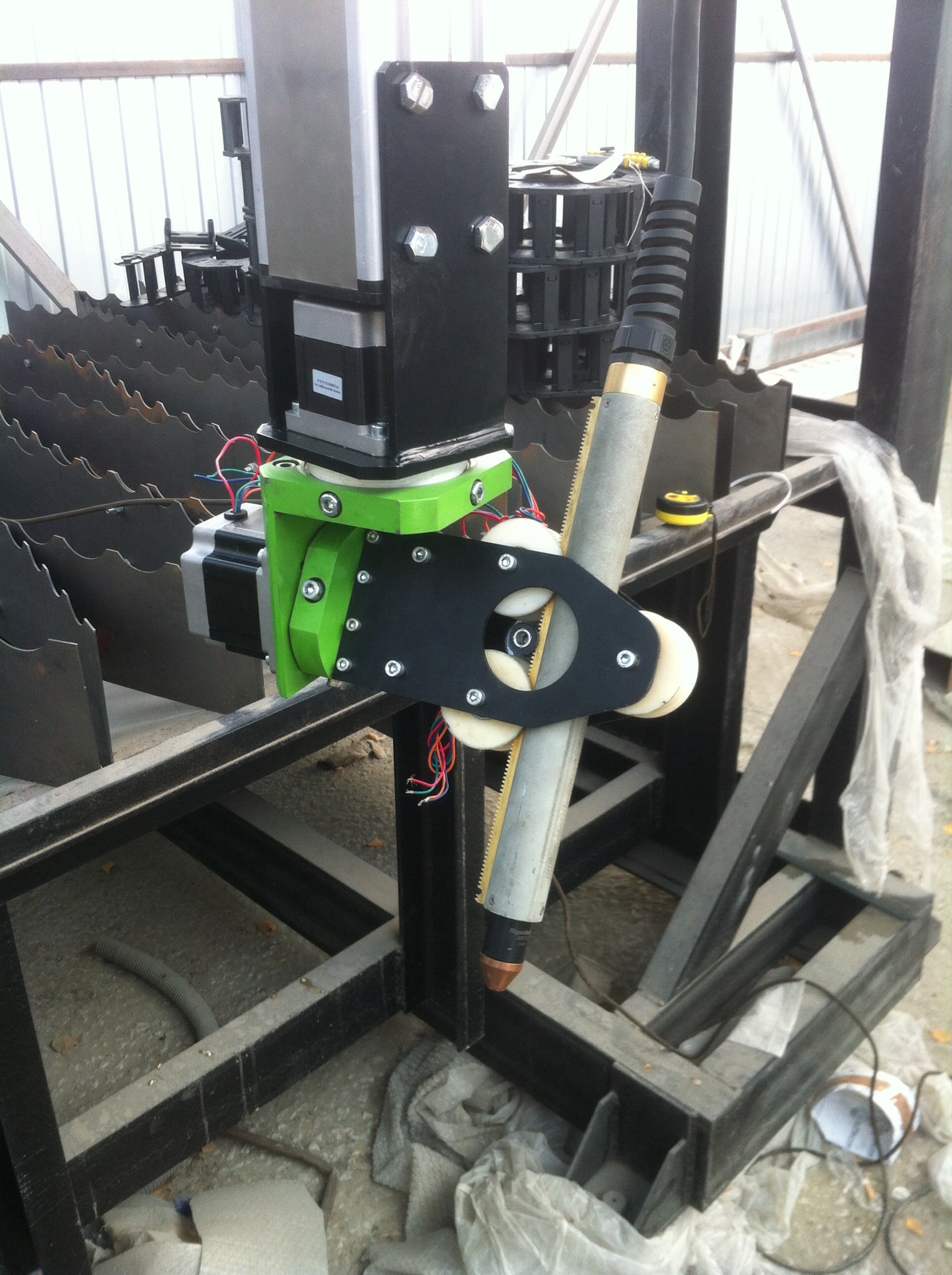 Было два варианта - просто плазматрон закрепленный на портале с ручным перемещением Z или ось с приводом (+thc опционально).
