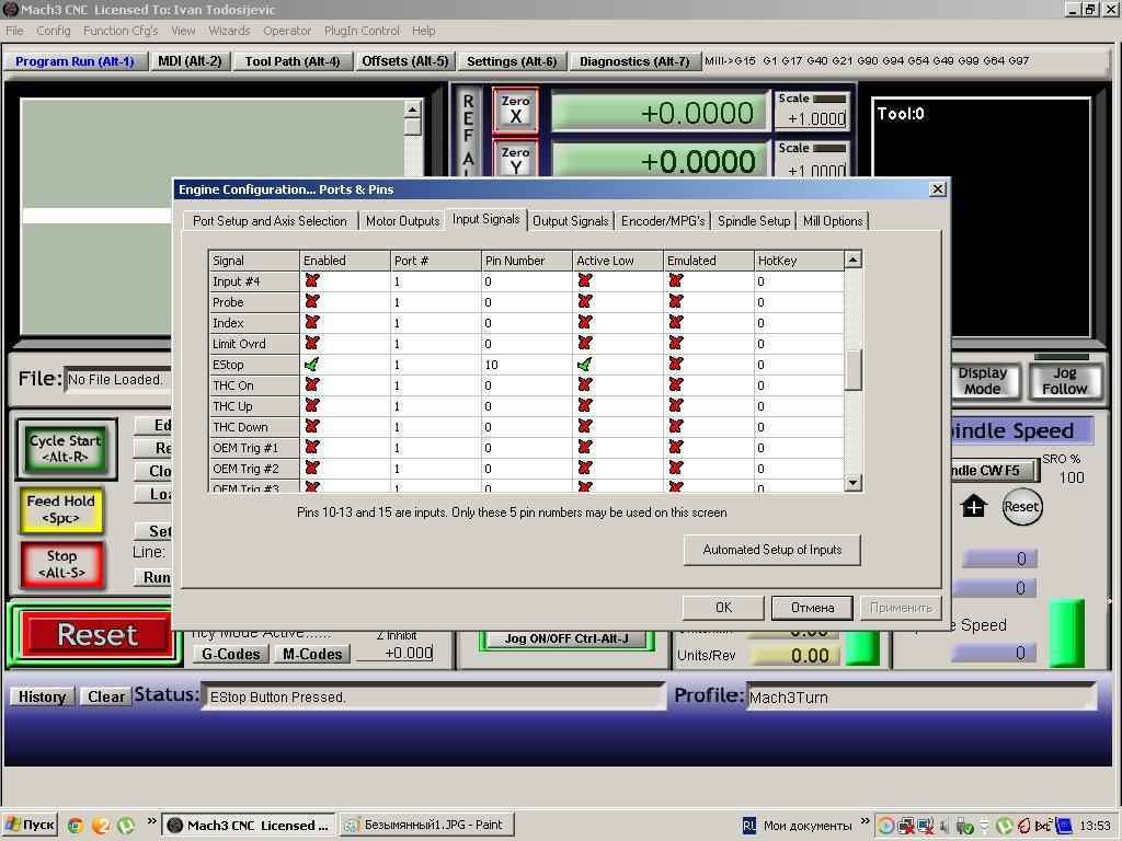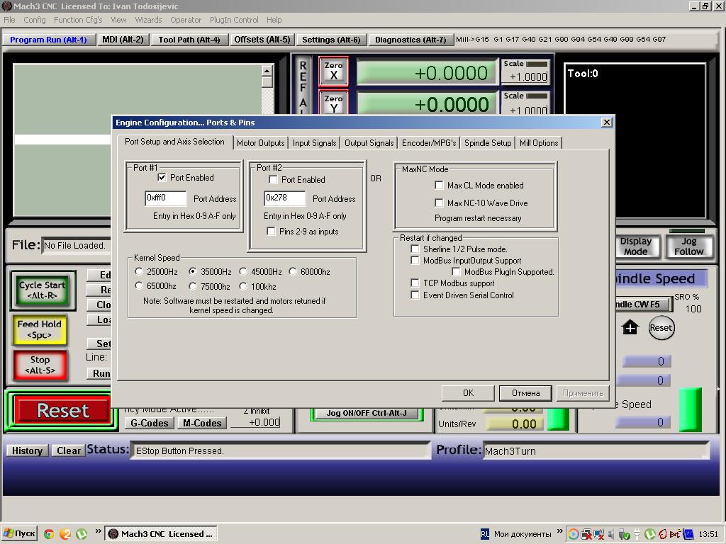 У LPT есть 3 режима работы: прием, передача, прием/передача если не ошибаюсь называется ecp и epp. Программа которую я советовал только посылает контроллеру импульсы и моторы работают, но Mach не только посылает данные но и получает данные, и наверное проблемма в том что Mach ожидал чего-либо в обратную сторону?
