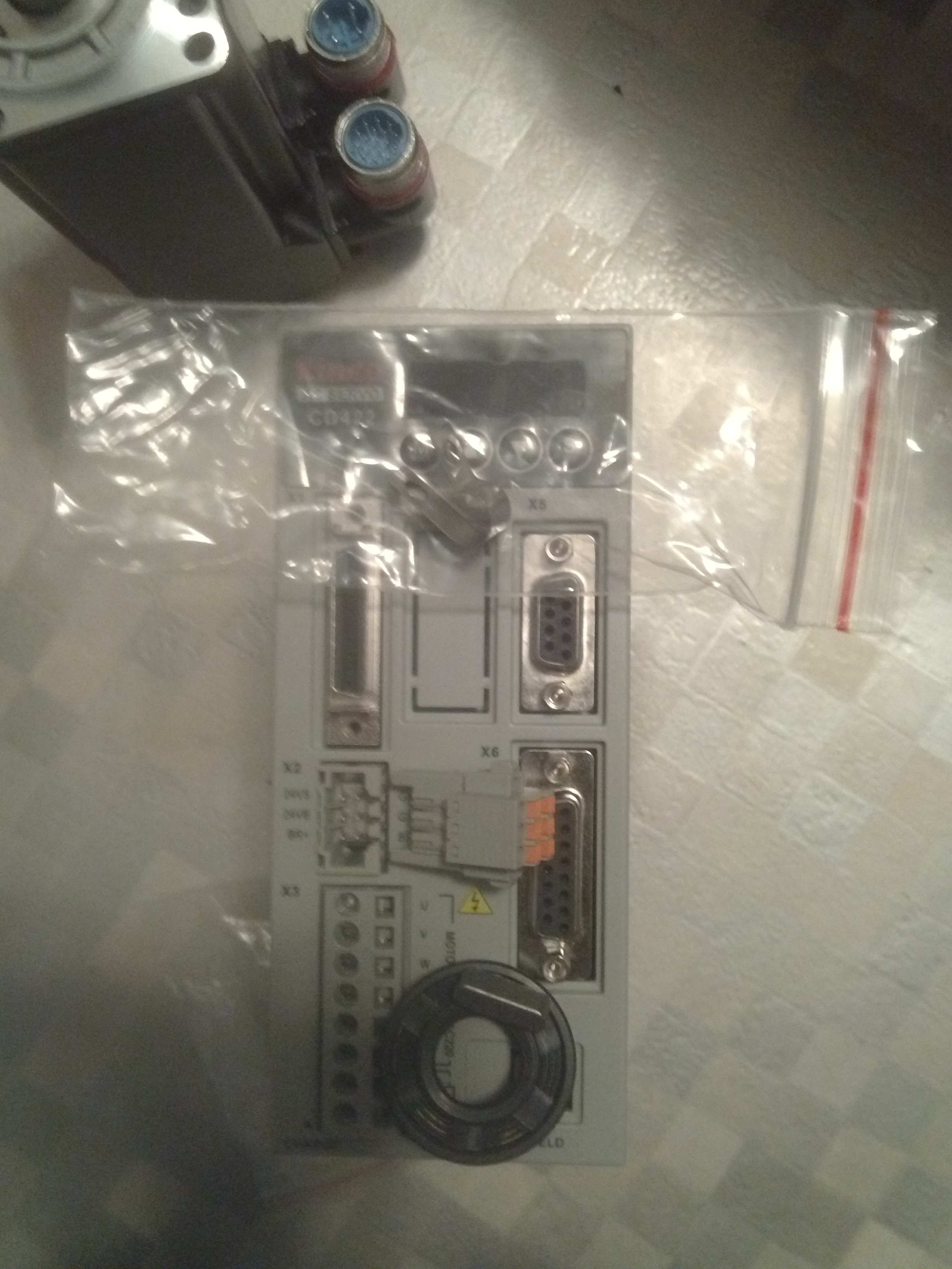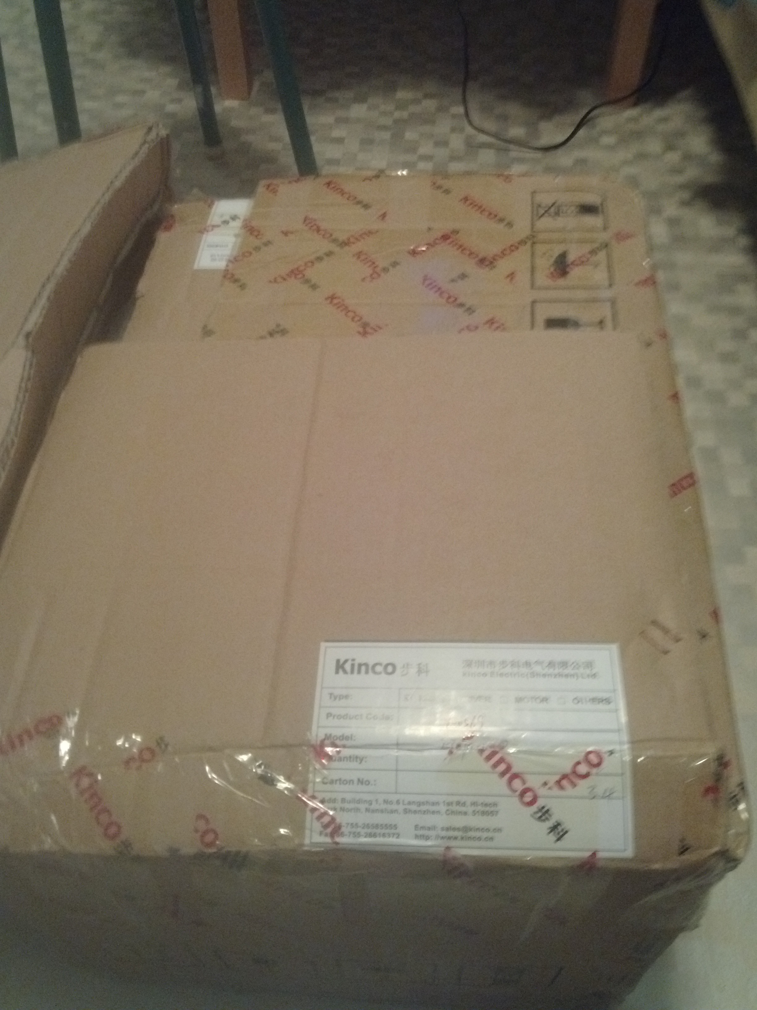 Три двигателя по 400W, три серводрайвера, провода, дополнительные разъемы, шпонка и резинка-уплотнитель на вал двигателя. Все в заводской упаковке.