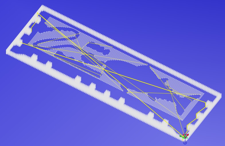 нарисовал ещё тестовую задачку и отправил на станок. Поговорил с товарищами, горворят для гравера и дерева 3 метра в минуту вполне пойдёт.