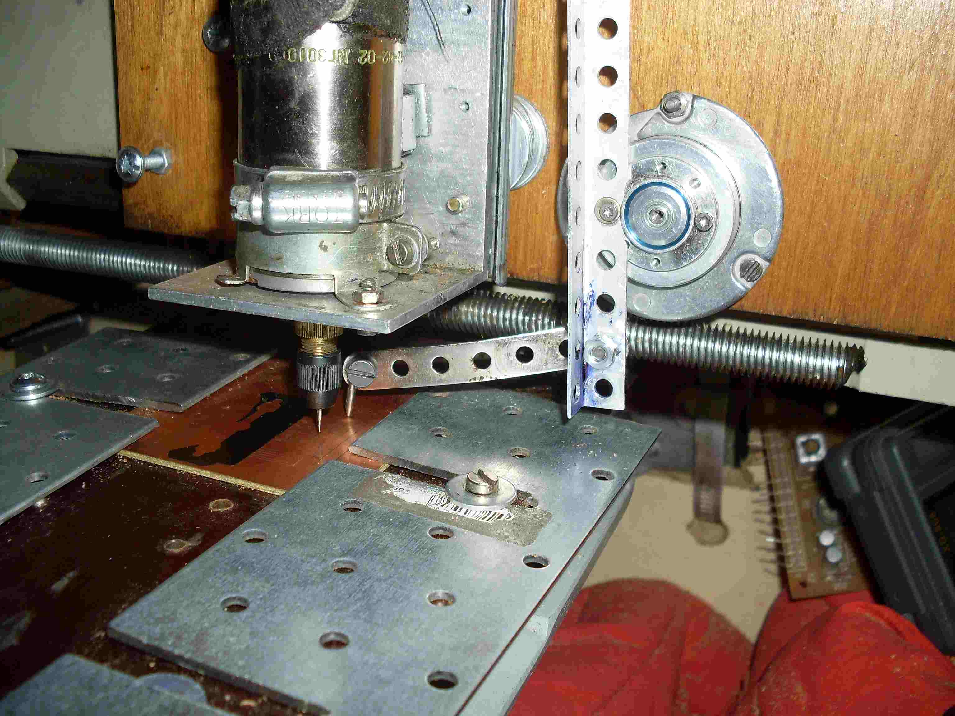 у меня пока вообще с фрезировкой много нерешённых проблем, поэтому начинаю с маленьких платок.скорость шпинделя около 1500 оборотов, фреза самопальная, жёсткость никакая, люфты везде начиная с подшипников мотора и кончая всей конструкцией - крепления на хомутах.