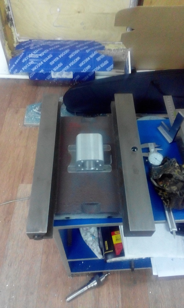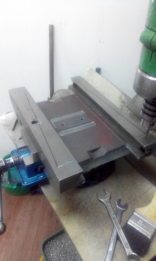 О каком столе речь? Пока разговор только про колонну. Салазку из чугунной плиты сделал такой, как позволил размер плиты. Под рельсы пошла опорная плоскость ластохвоста, была просто фрезерована я еще чуток притер.