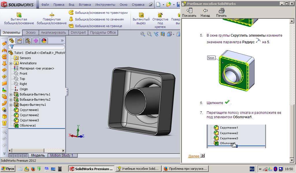 (упражнение №1-детали, редактирование элементов, воссоздание скруглений грани)