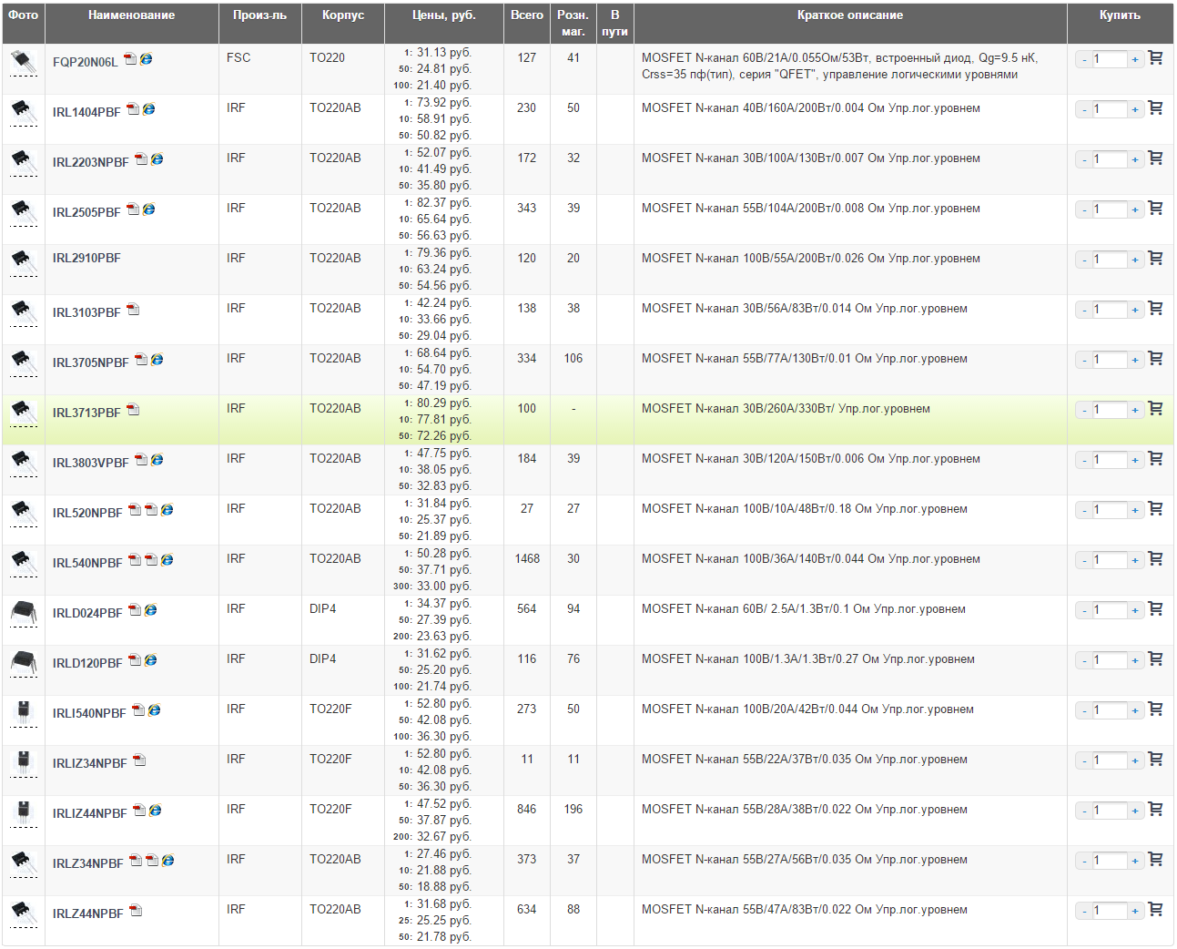 Вот, например, полевые транзисторы, продающиеся у нас в магазине электроники, управляемые логическими уровнями: