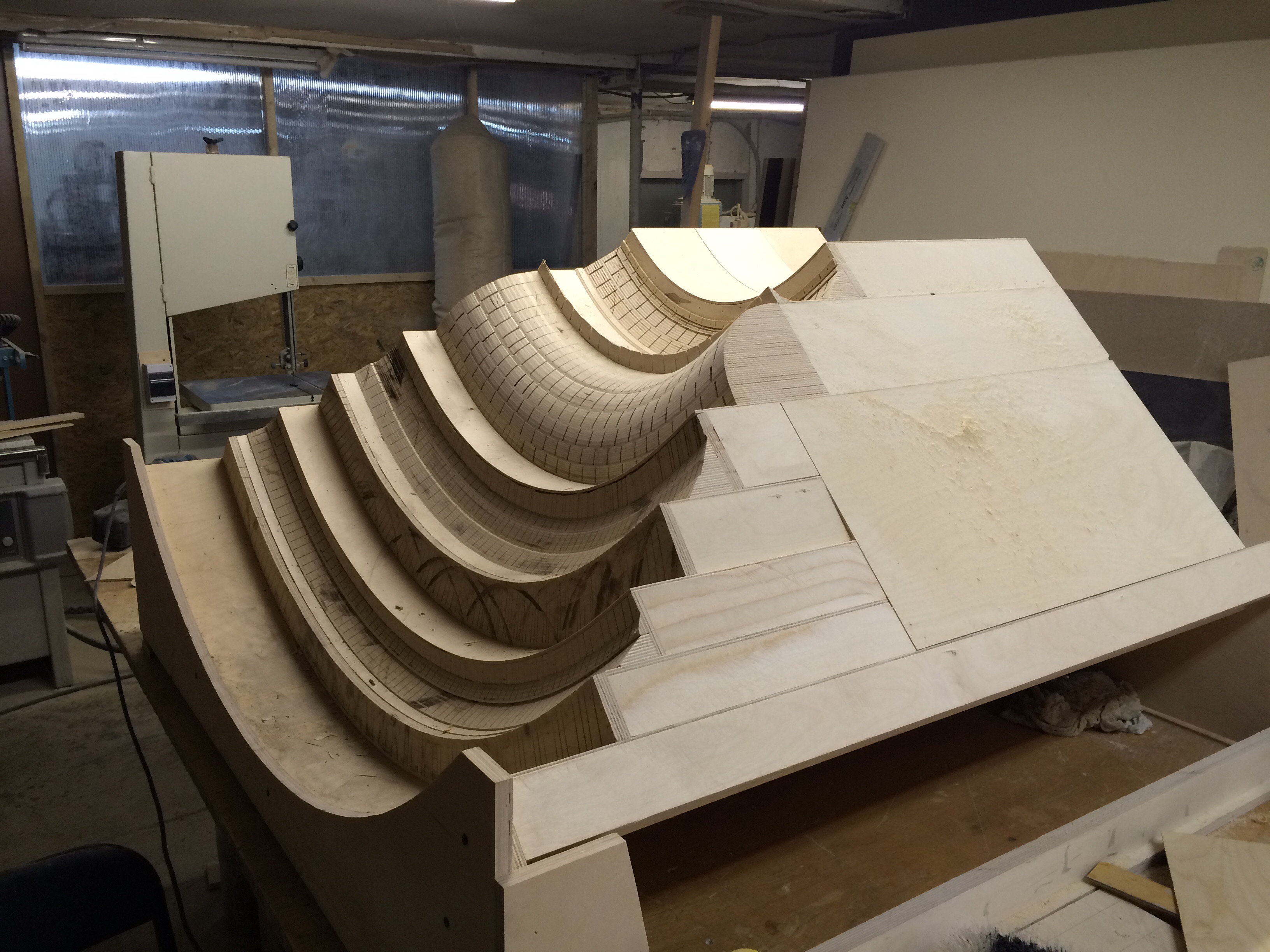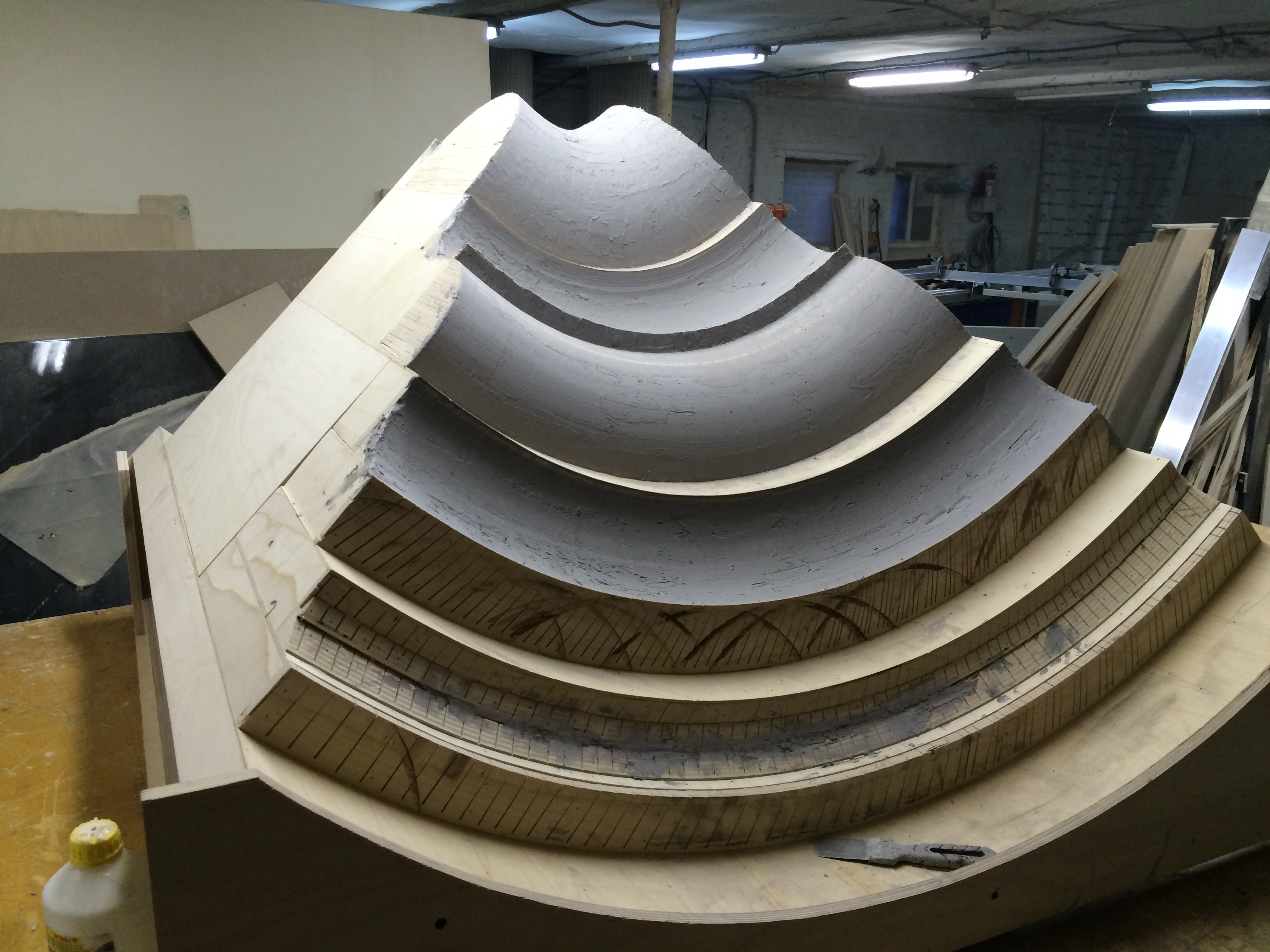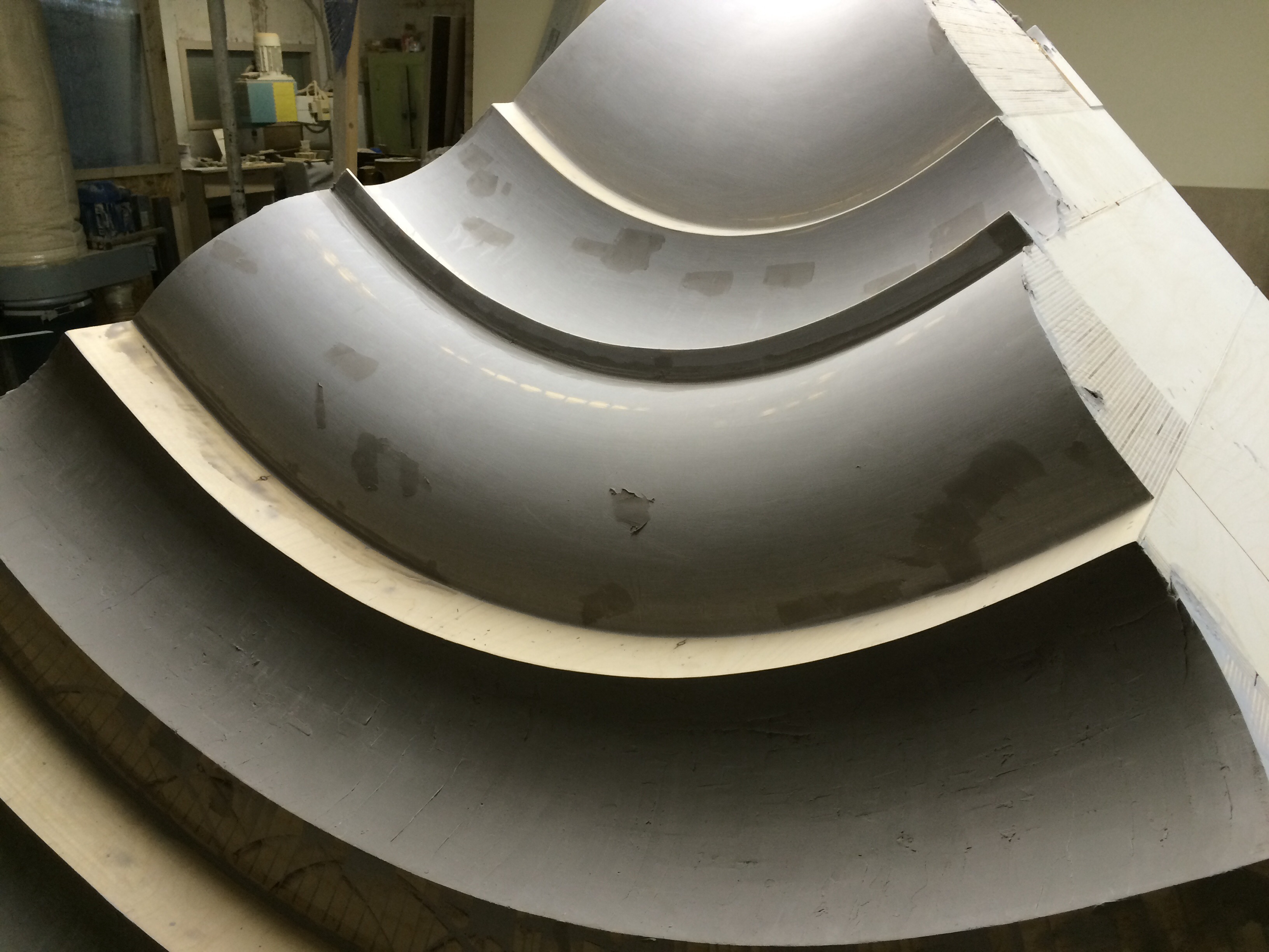 мы делали четверь формы для литья большой чаши фонтана из искуственного камня. примерно 2.5 метра диаметр и больше метра высота.