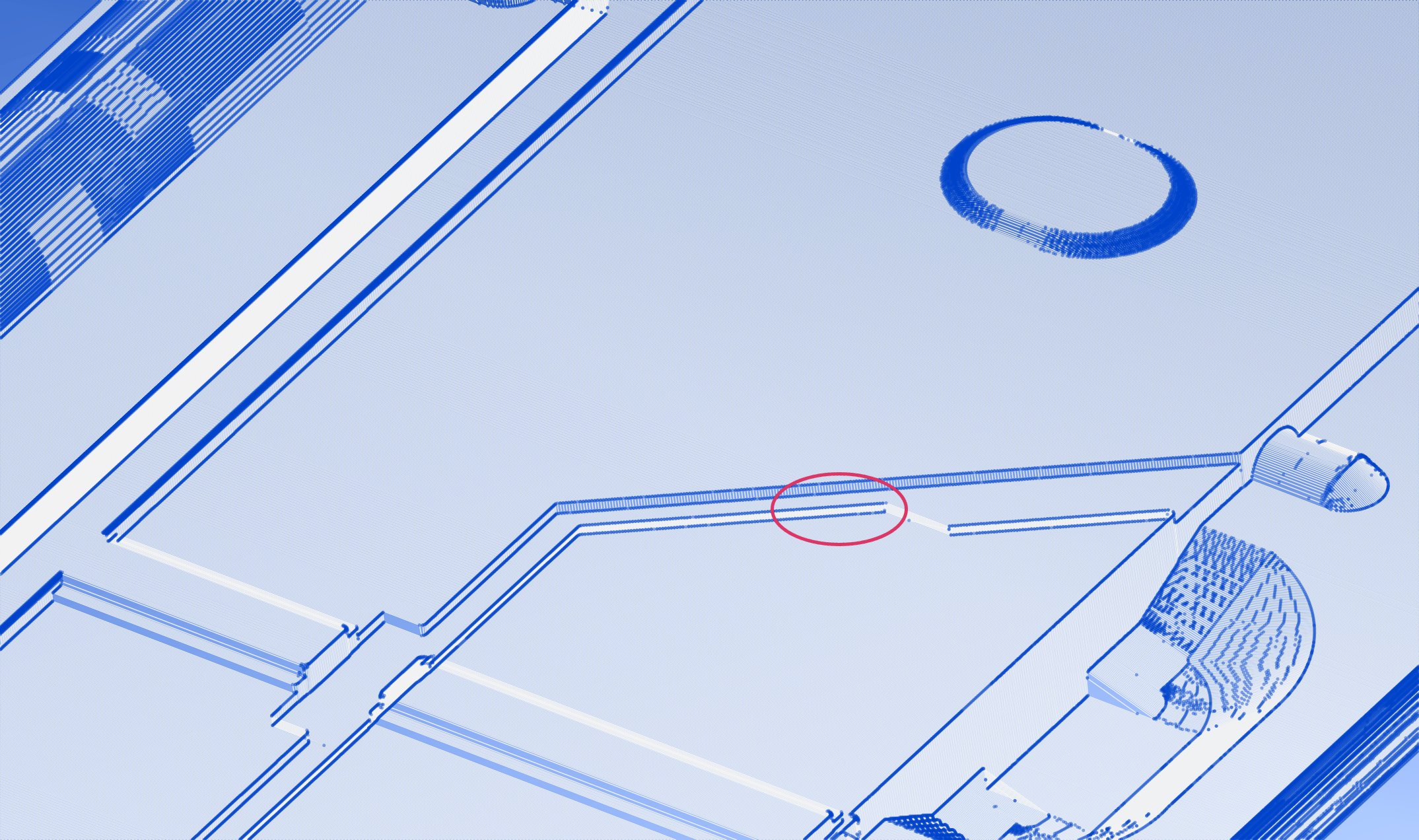 Если натыкается на ту часть траектории, где изменение направления происходит несколькими пологими углами - он срезает траекторию скругляя до 10 мм.