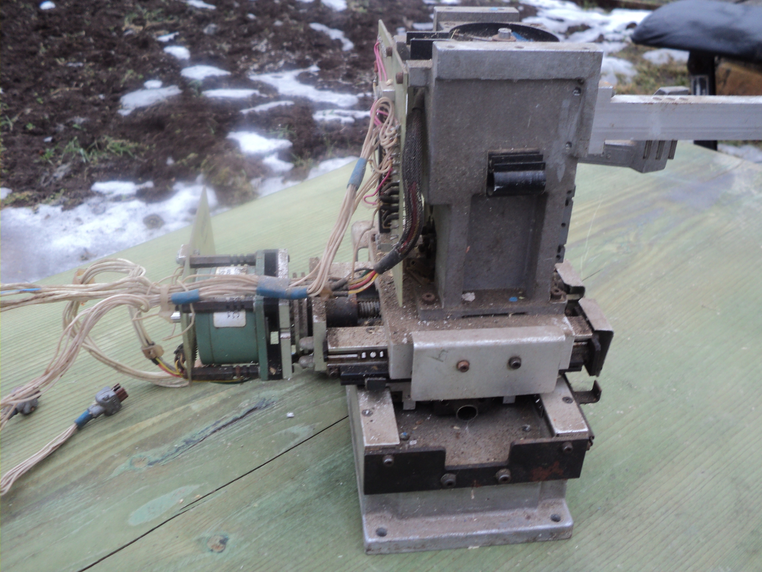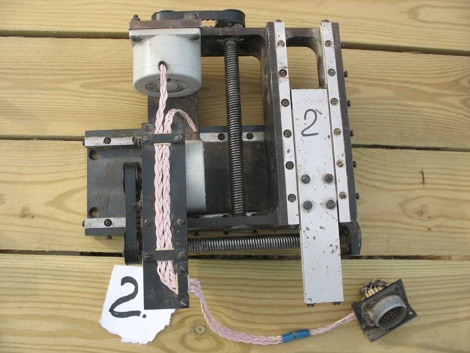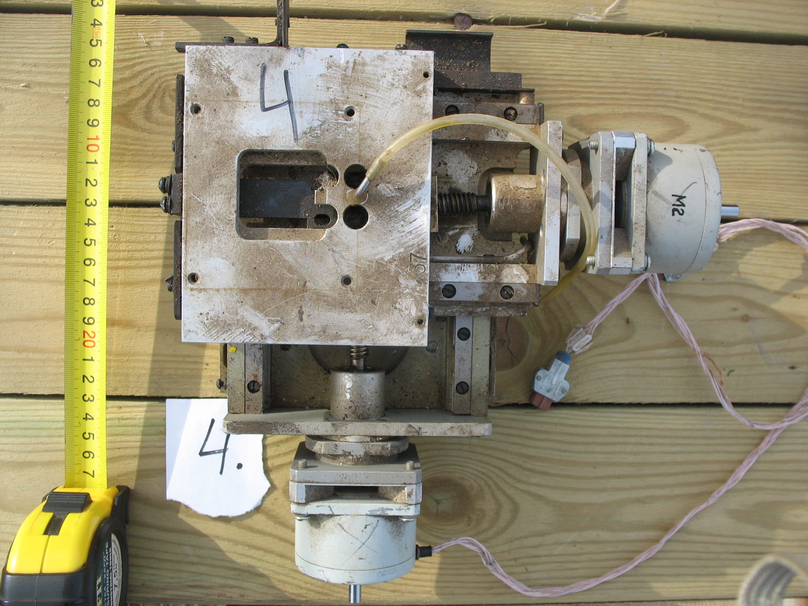 №3 3 оси, нет одного мотора, по горизонтальным осям ход 45 мм, по вертикальной 11мм (ползает кубик в средней части на котором маркером нарисована тройка)