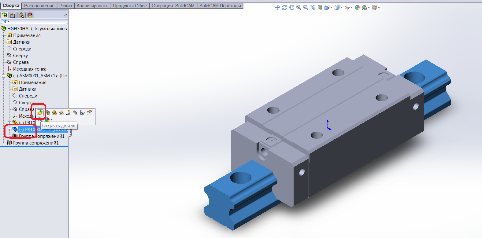 Открываем деталь из сборки