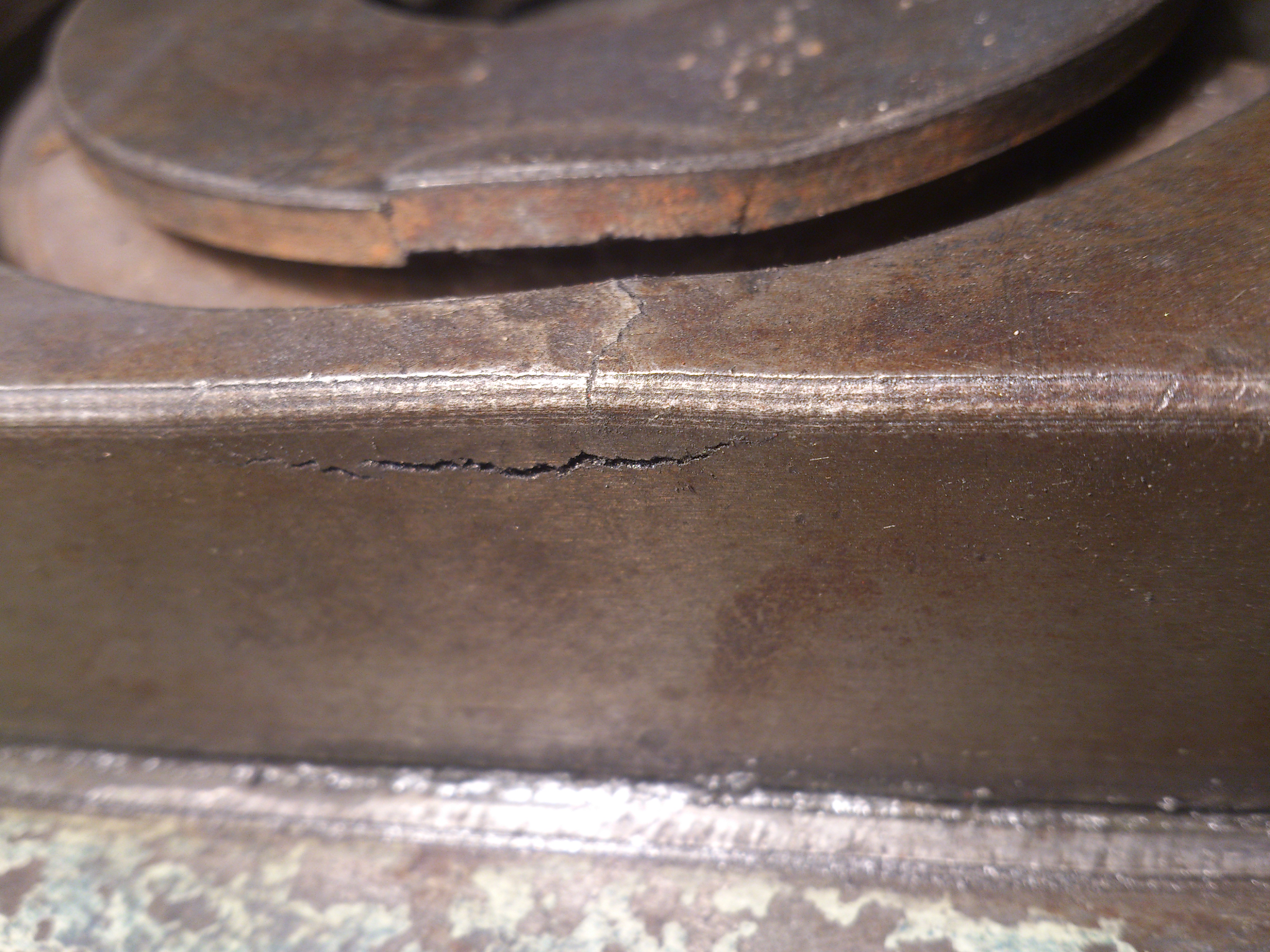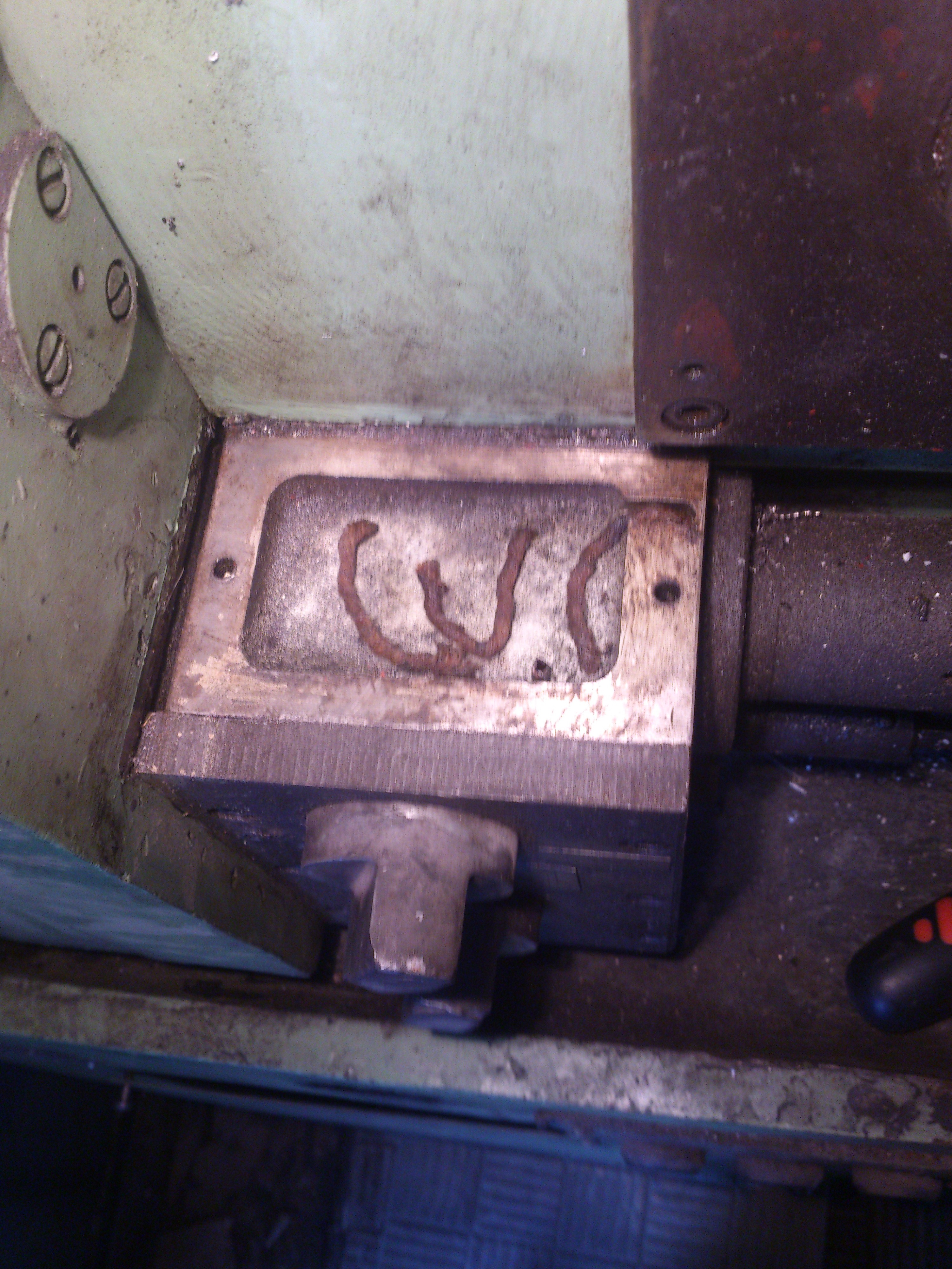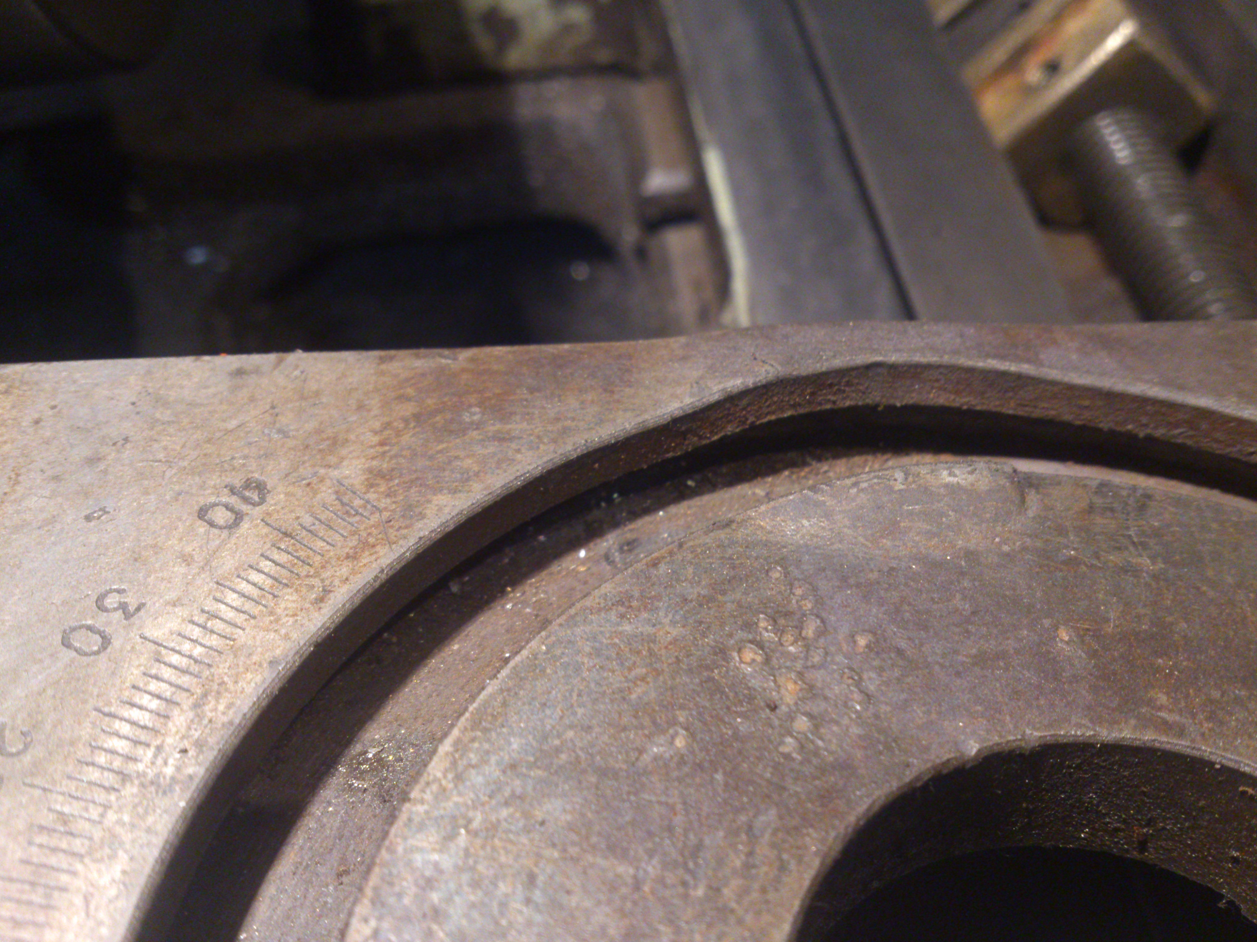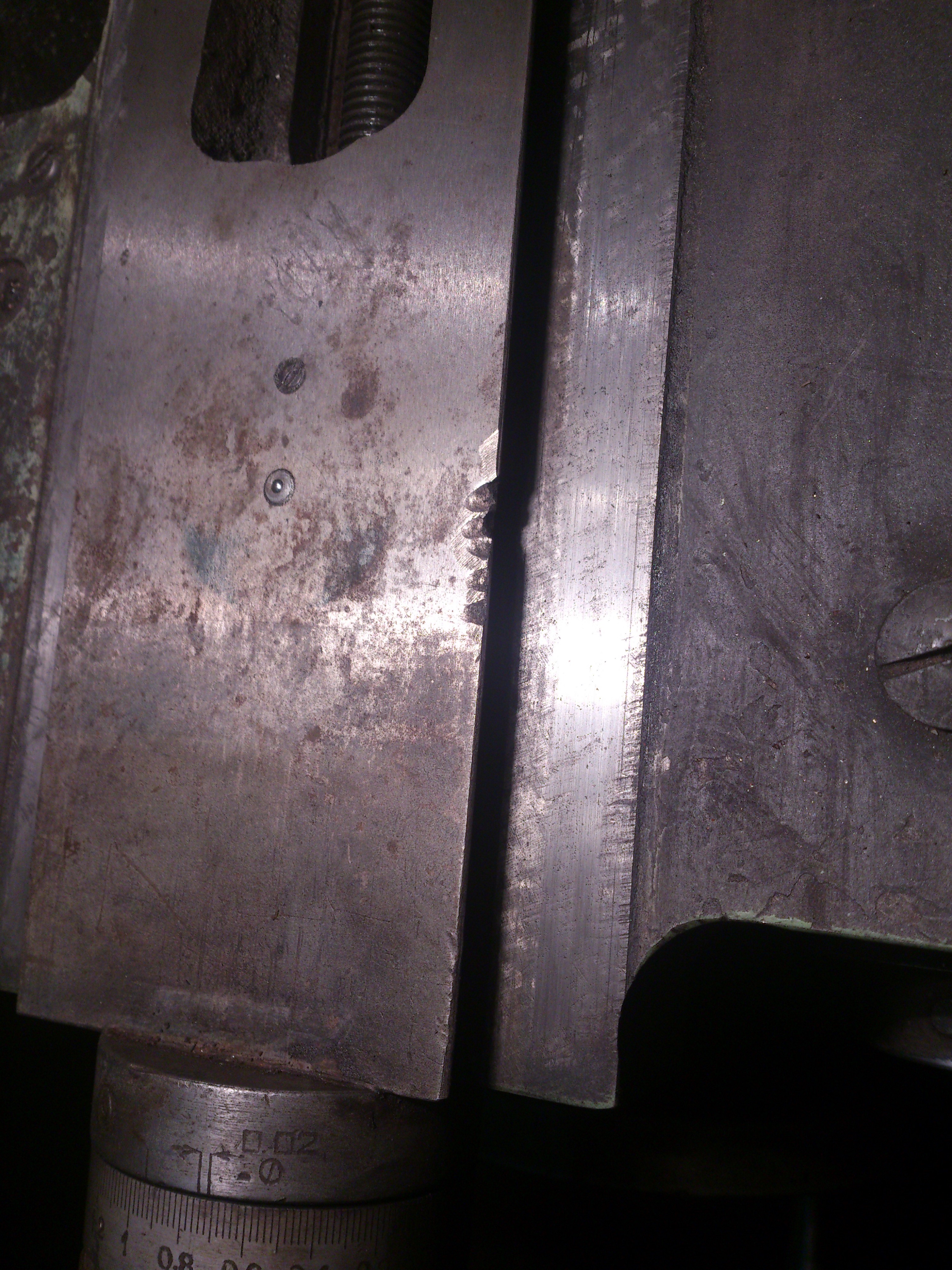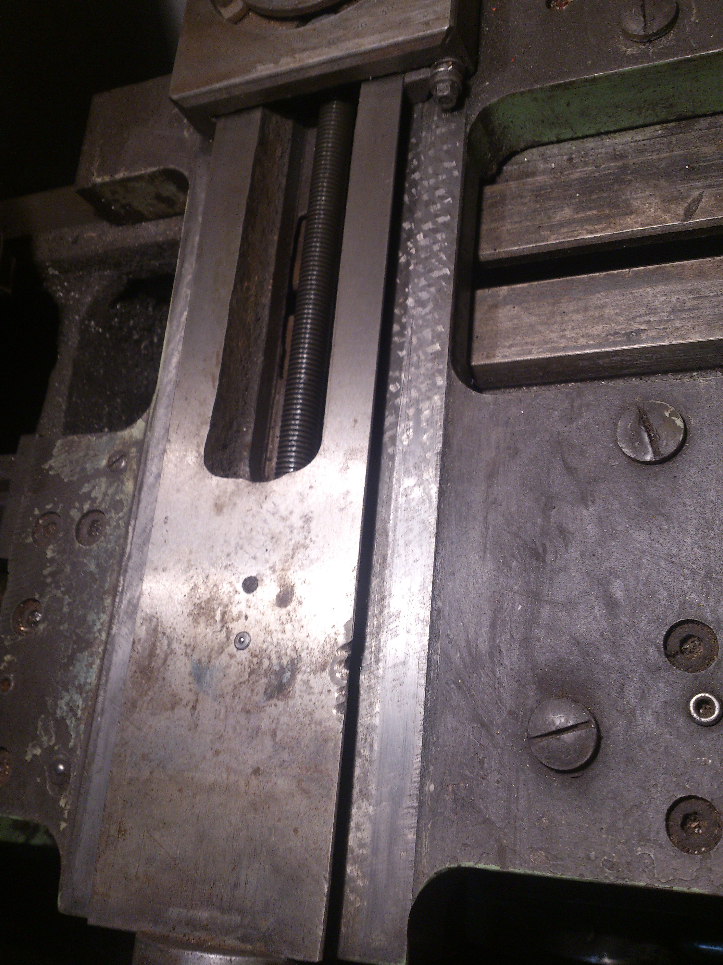 Тут плакать в самую пору. ему досталось конкретно. Хоть и выработка вроде не сильно большая, и даже сохранилась шабровка. Бывший хозяин видимо не нашел малую продольную и приспособил то, что нашел (какая-то каретка с ластохвостом). Резцедержка была закреплена на "левую" деталь, которая уже через упорные подкладки притягивалась к поперечке. И вот тут то место, с которого можно плакать :( Затягивал он её так, что попереку с одной стороны просто выгнуло, а с другой все еще хуже - лопнула. Да на фото все видно. Думаю искать поперечку с малой продольной или плюнуть и подумать по поводу перехода на рельсы. Еще есть бредовая идея попытаться приладить револьверку от ТПК-125 (лежит, молчит, кушать не просит). Что посоветуете?