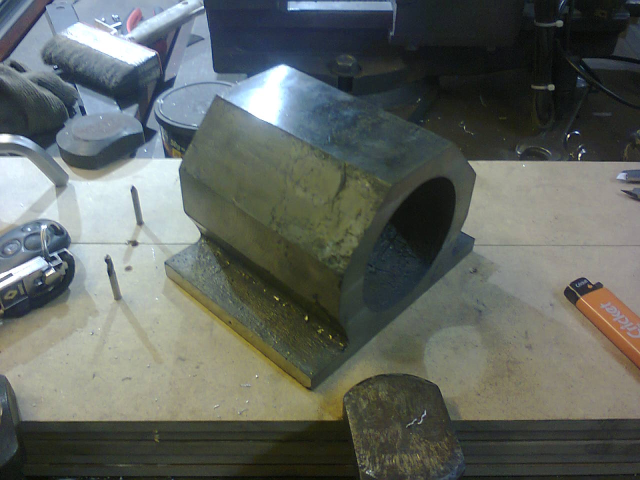 Долго эта железяка валялась и ждала своего часа, т.е. когда "Малыш" сможет её обработать. Наконец руки дошли. Вроде неплохое начало, в оконцовке посмотрим, что выйдет. Корпус, естественно, будет облегчён до веса алюминия, и вид конечно же будет гораздо приличней китайского силуминового уродца. Жесткость у чугуняшки в сравненинии с люминием тоже получше будет. На данной стадии вот так