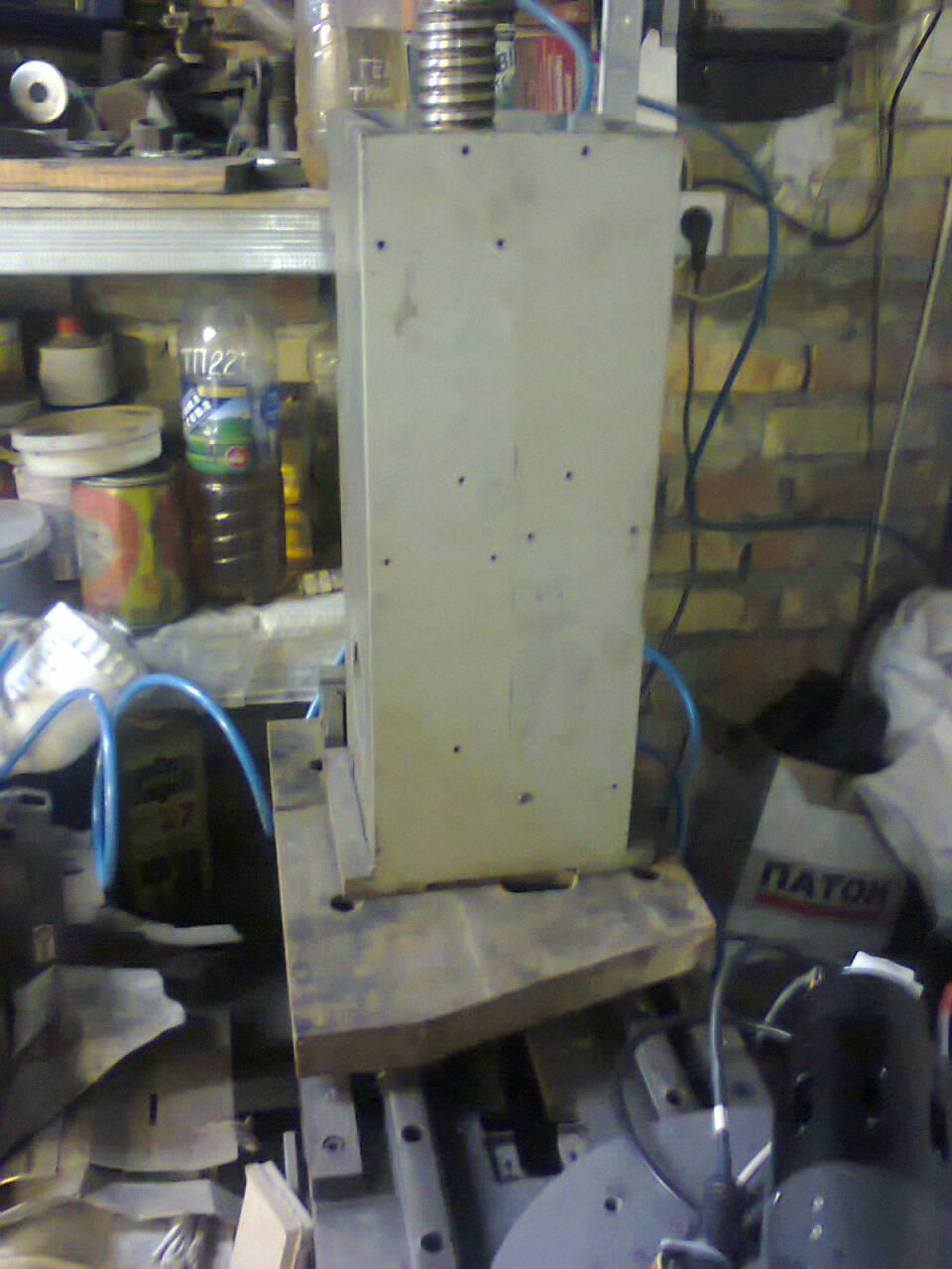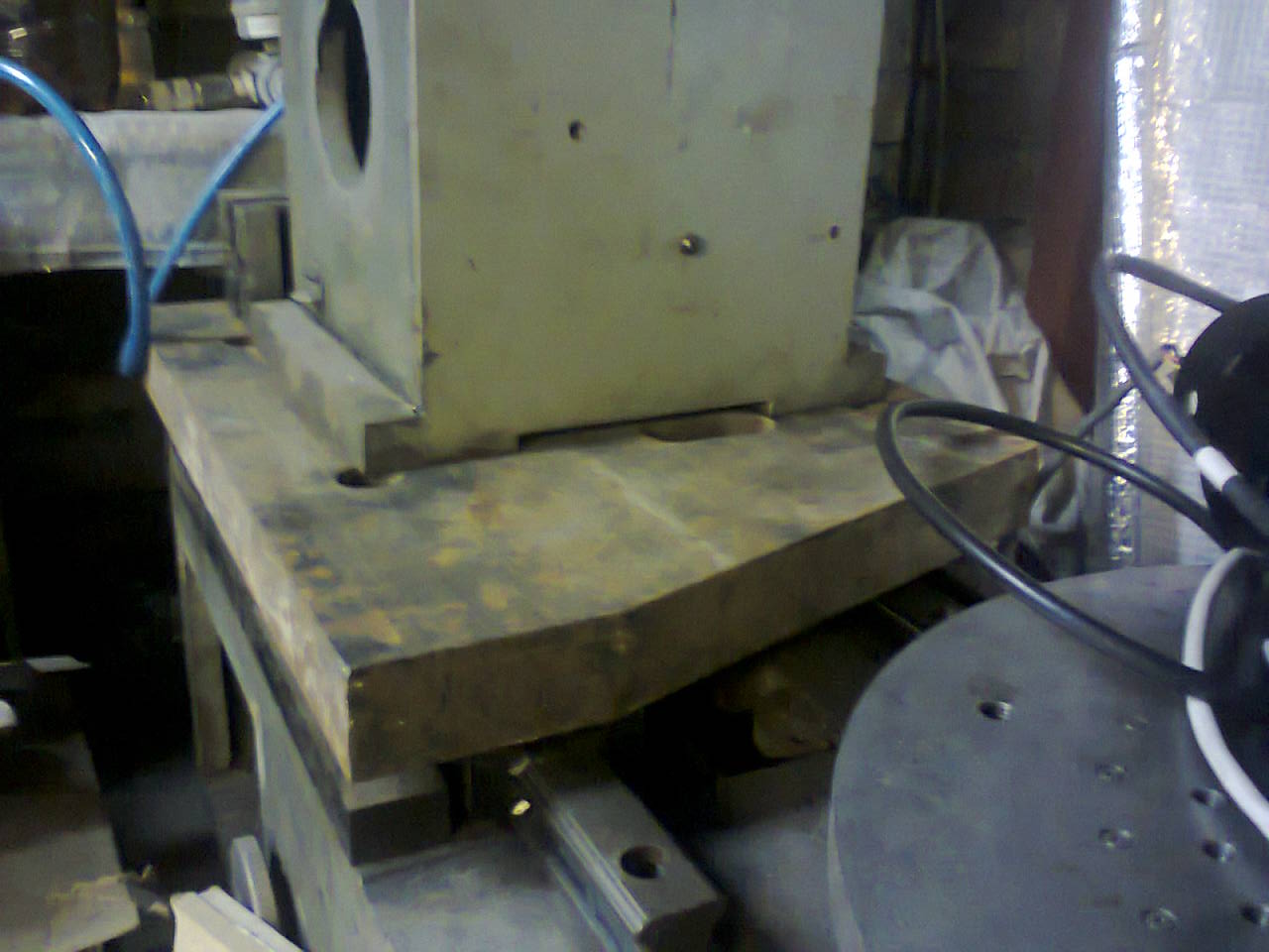 Ещё одна стадия технологического секса. Предистория. Подвернулась на чипмейкеровской барахолке станина. В юности был станок для центрования электродов. Ну там всякие УЦИ, магнитный столик, проекционный микроскоп на нем были. Частично та станина была выпотрошена. Провода выкусили, электрику, ну как обычно у варваров-металлоломщиков :) . Цену просили вполне сносную, пройти мимо но никак не мог. Чтоб затащить в гараж, пришлось прямо у себя в бусе разбирать на куски. Куски затянул и сложил обратно. Вышла вот такая конструкция